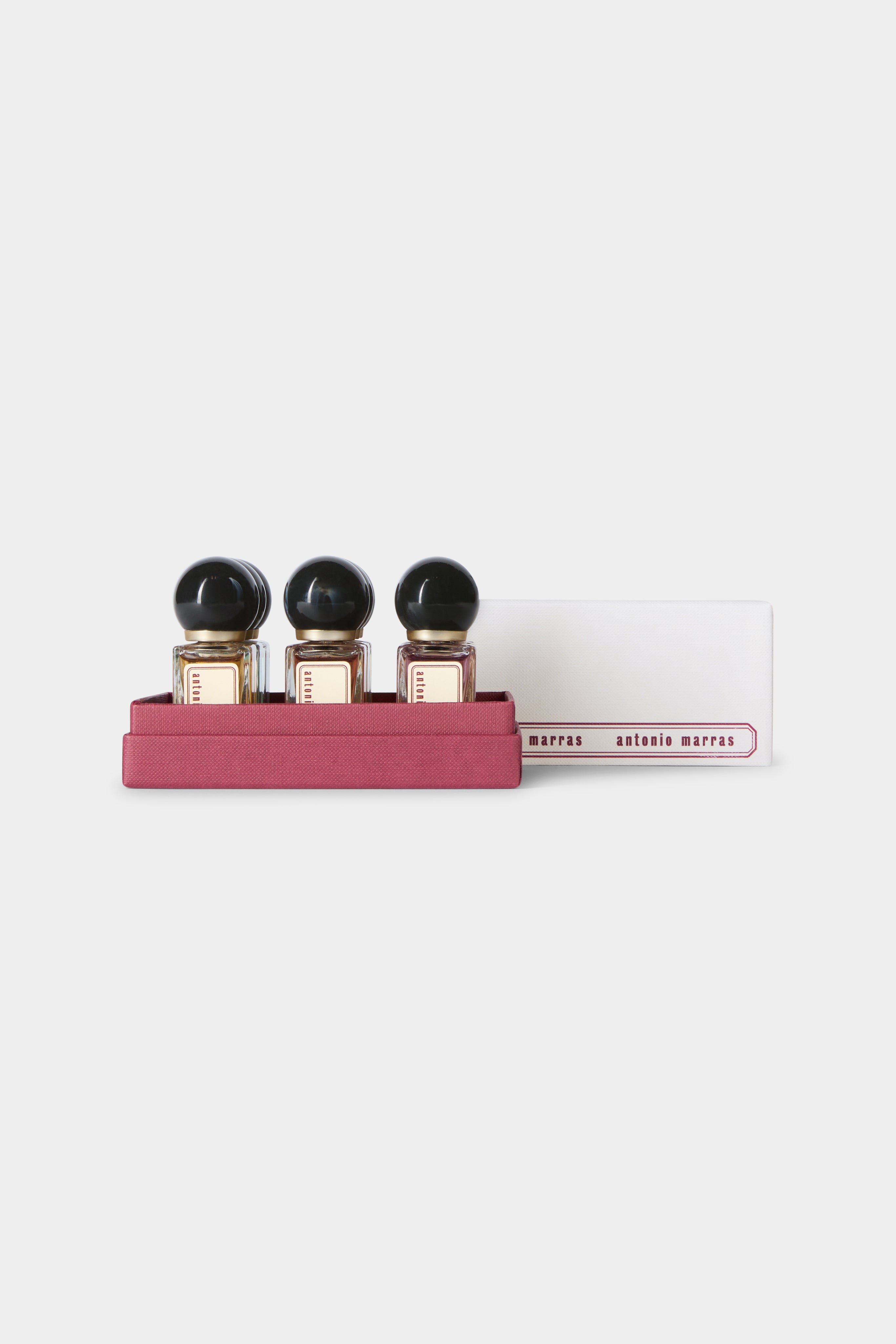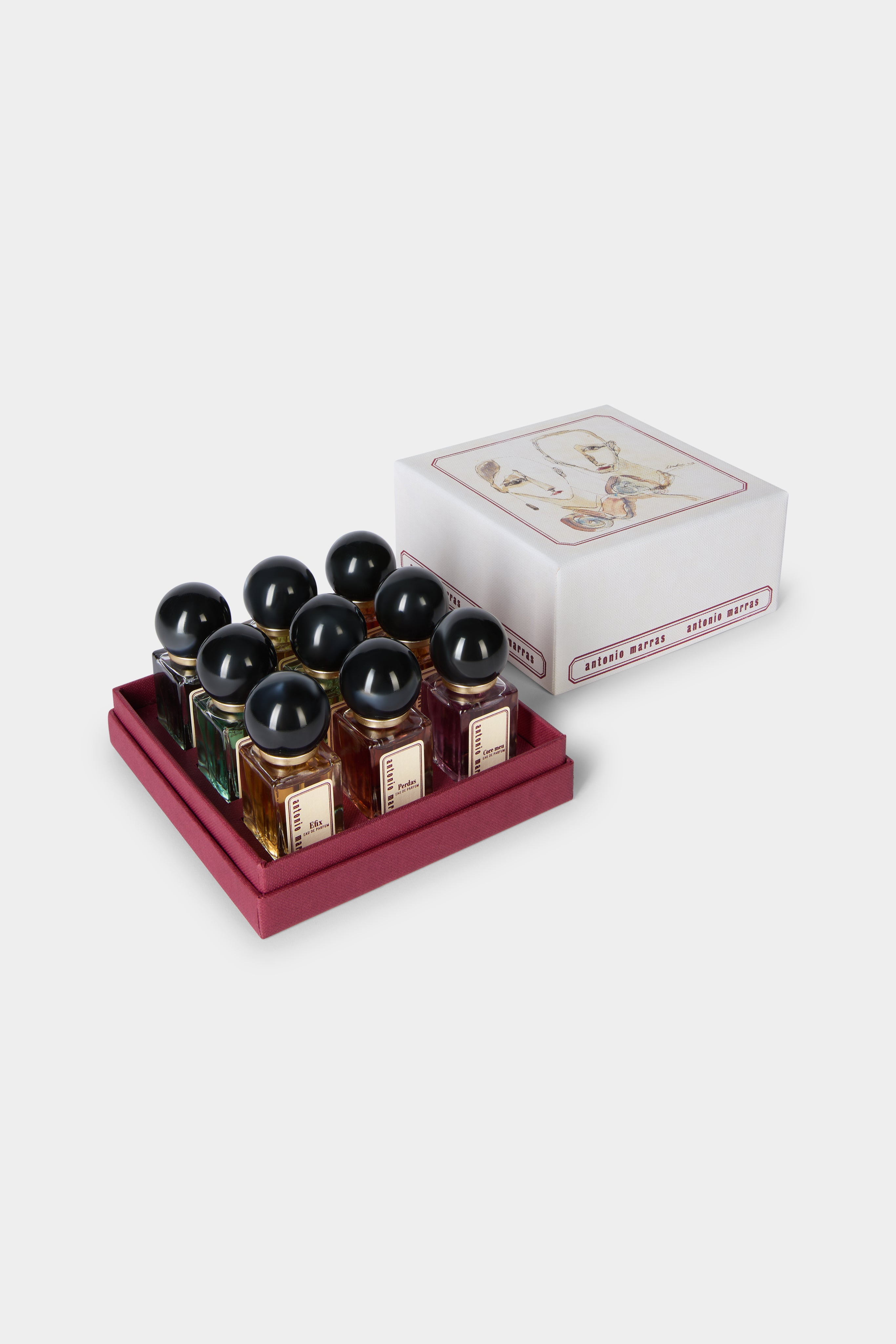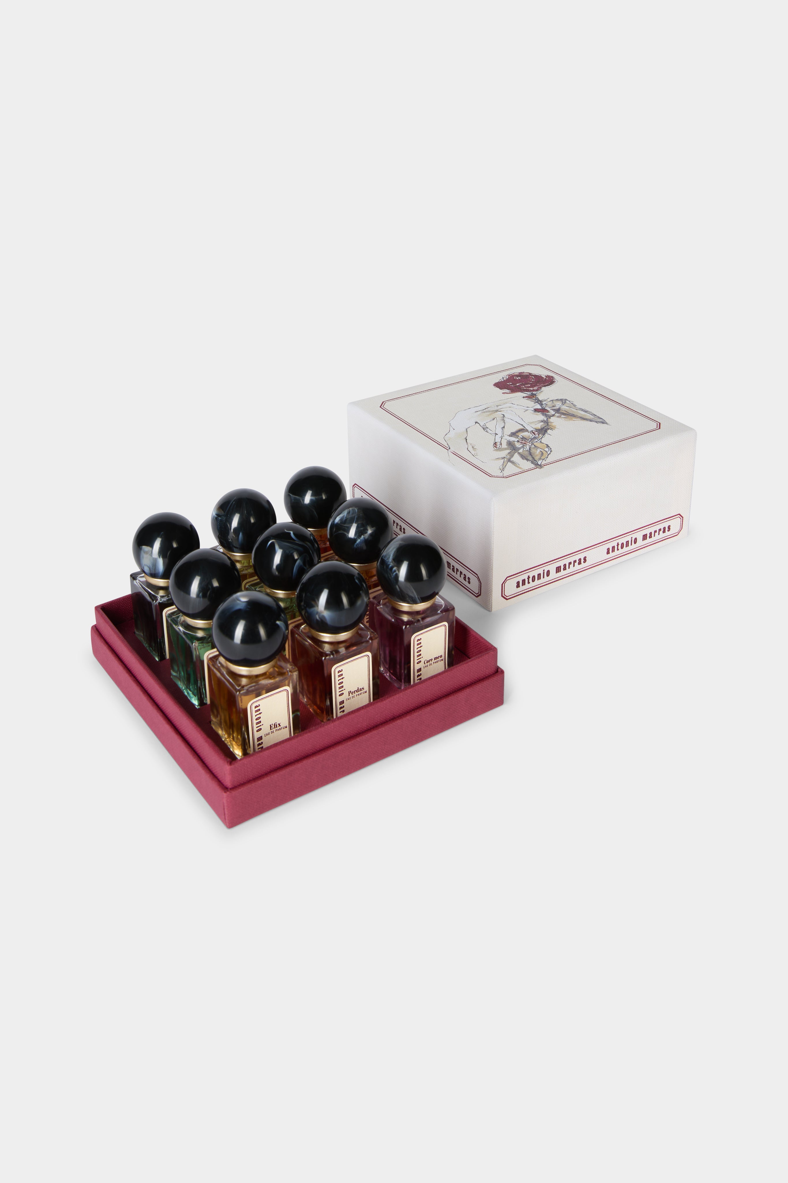 Discover the complete olfactory universe of Antonio Marras through all nine fragrances in a 10 ml format. An immersive journey through memories, emotions, and contrasts, brought together in a single, precious collection to experience and to gift.