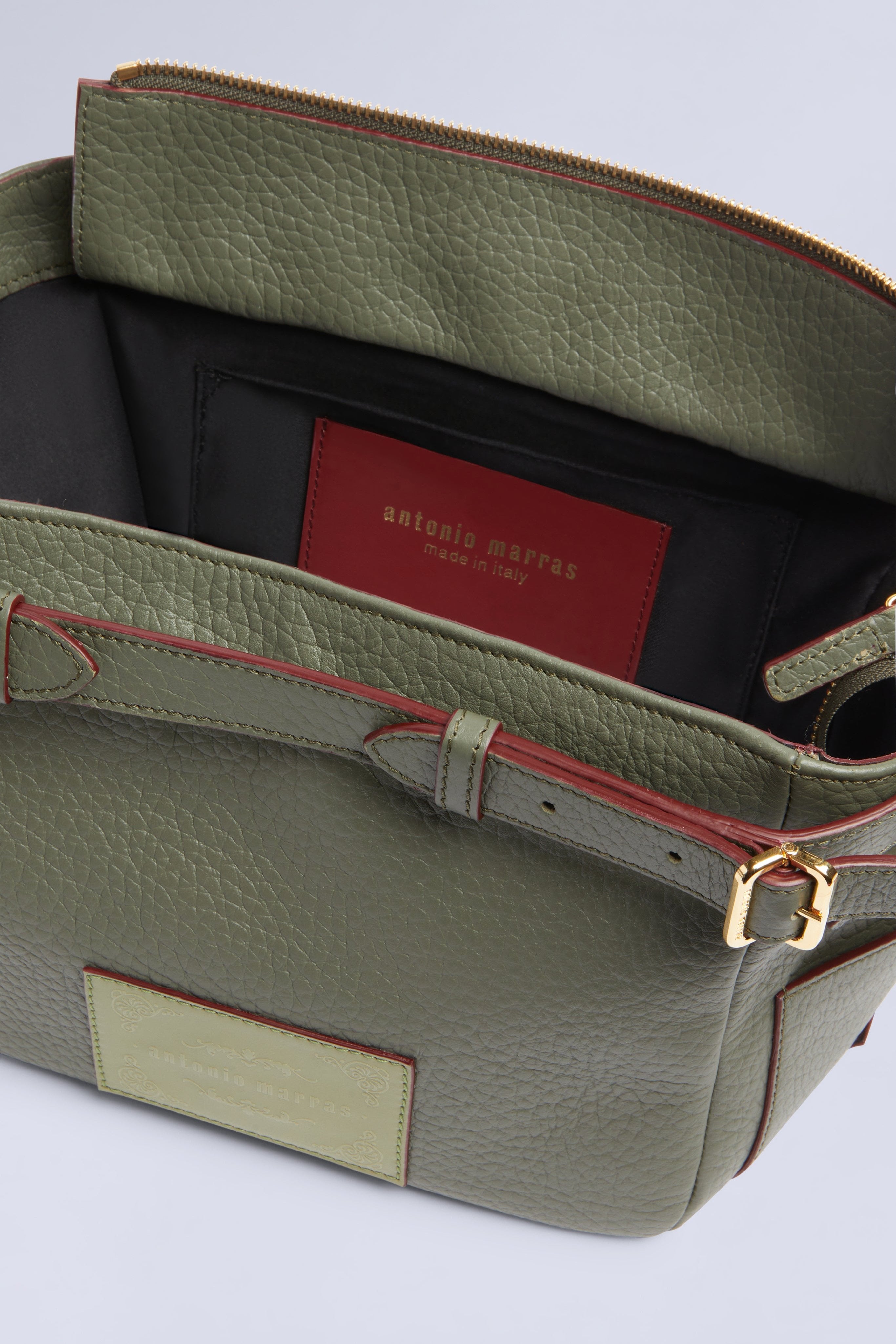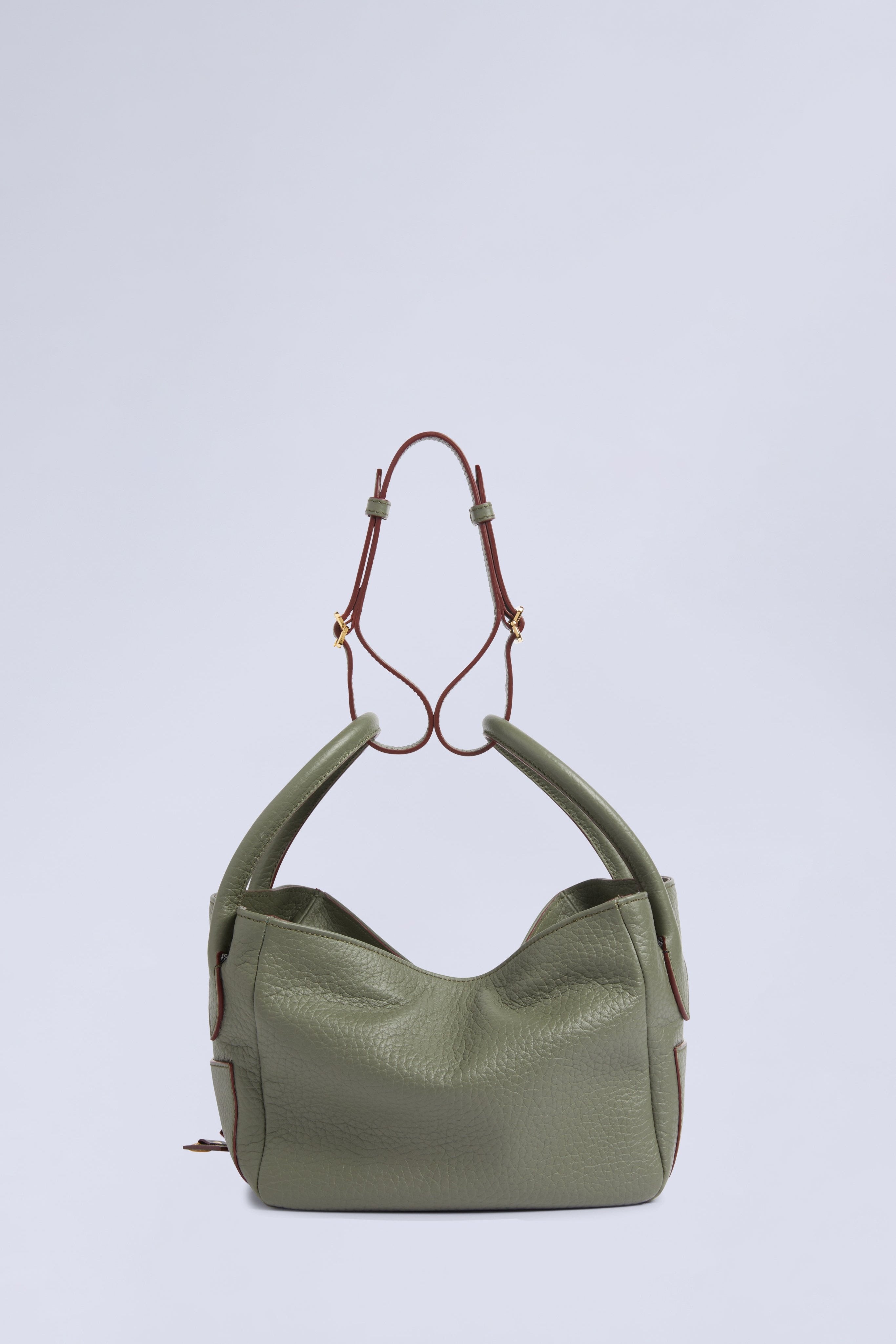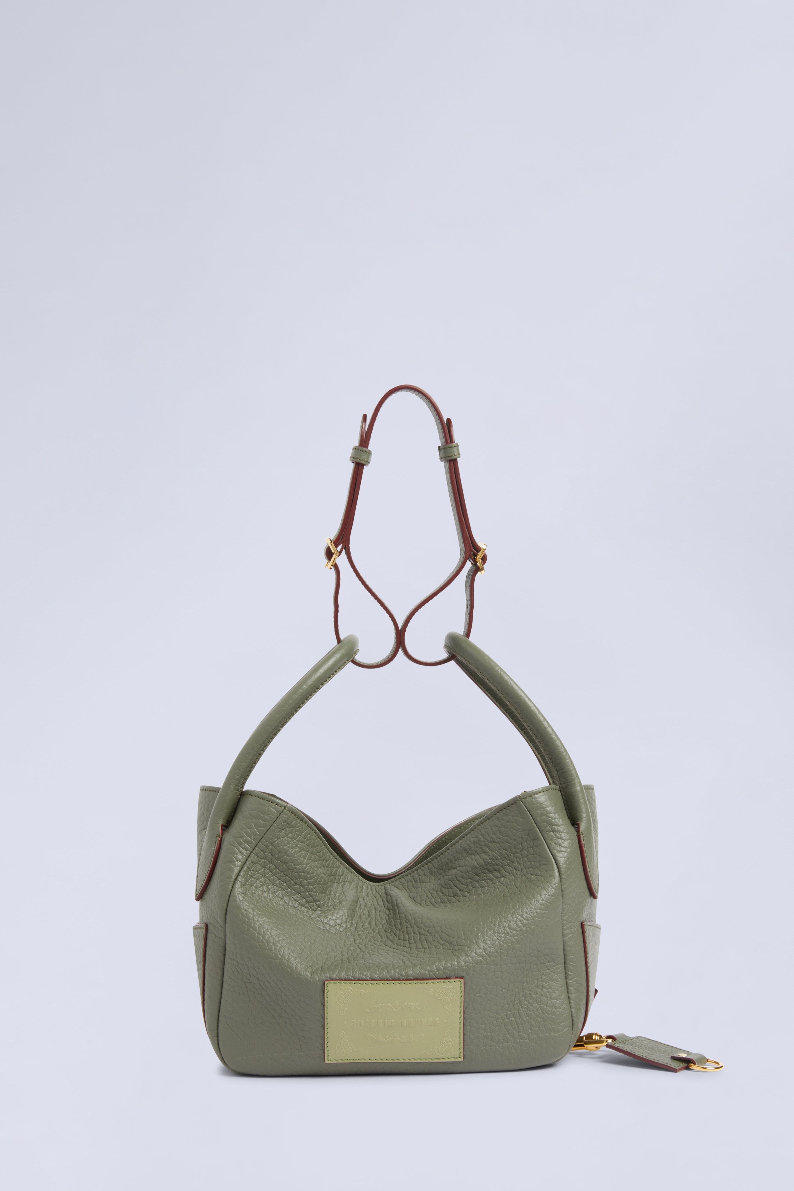 Bag in 100% bovine leather with adjustable and removable straps. It can be worn as a crossbody, over the shoulder, or carried by hand.