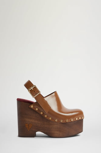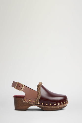 • Bordeaux Leather High Clog Mule