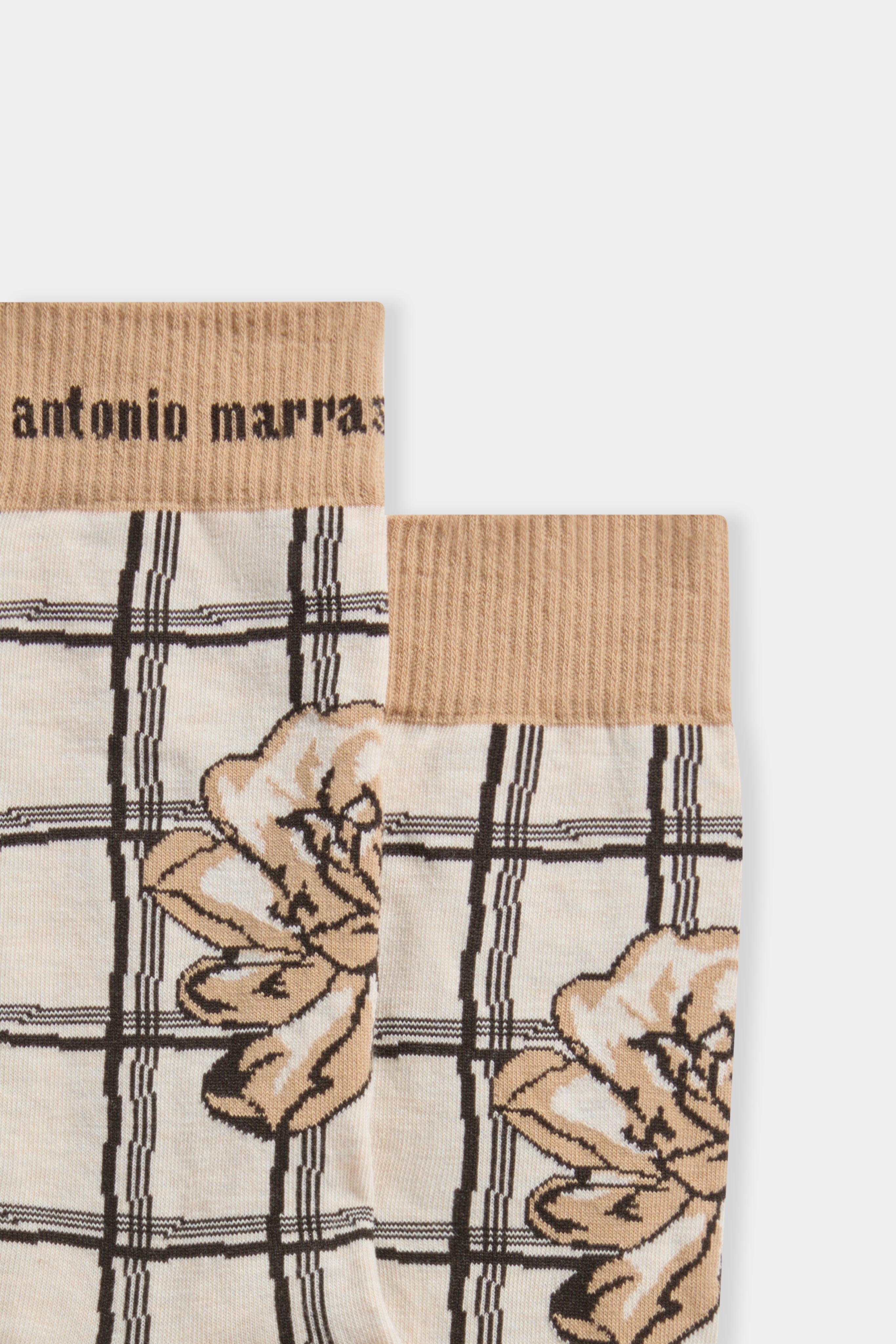 Socks in a soft cotton-blend with a ivory check pattern and floral jacquard motifs.