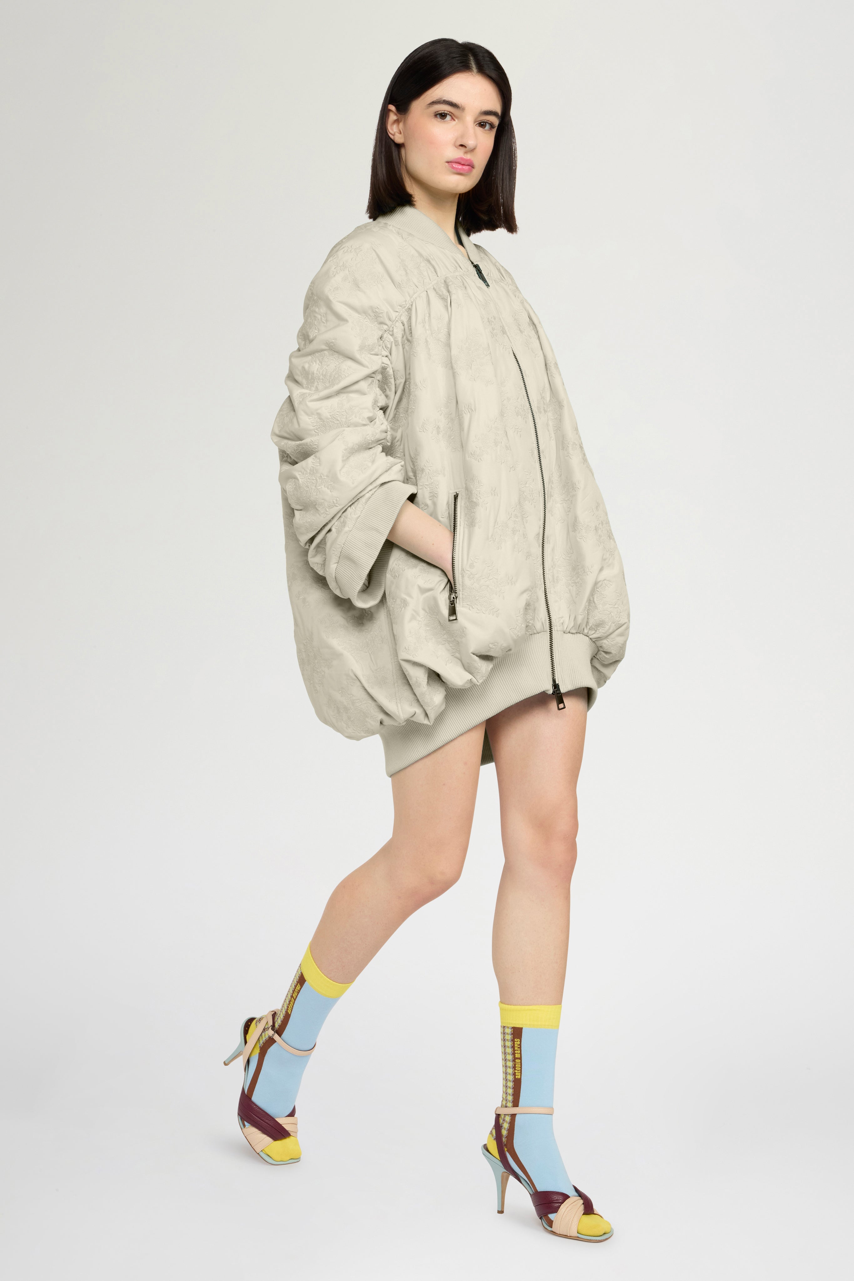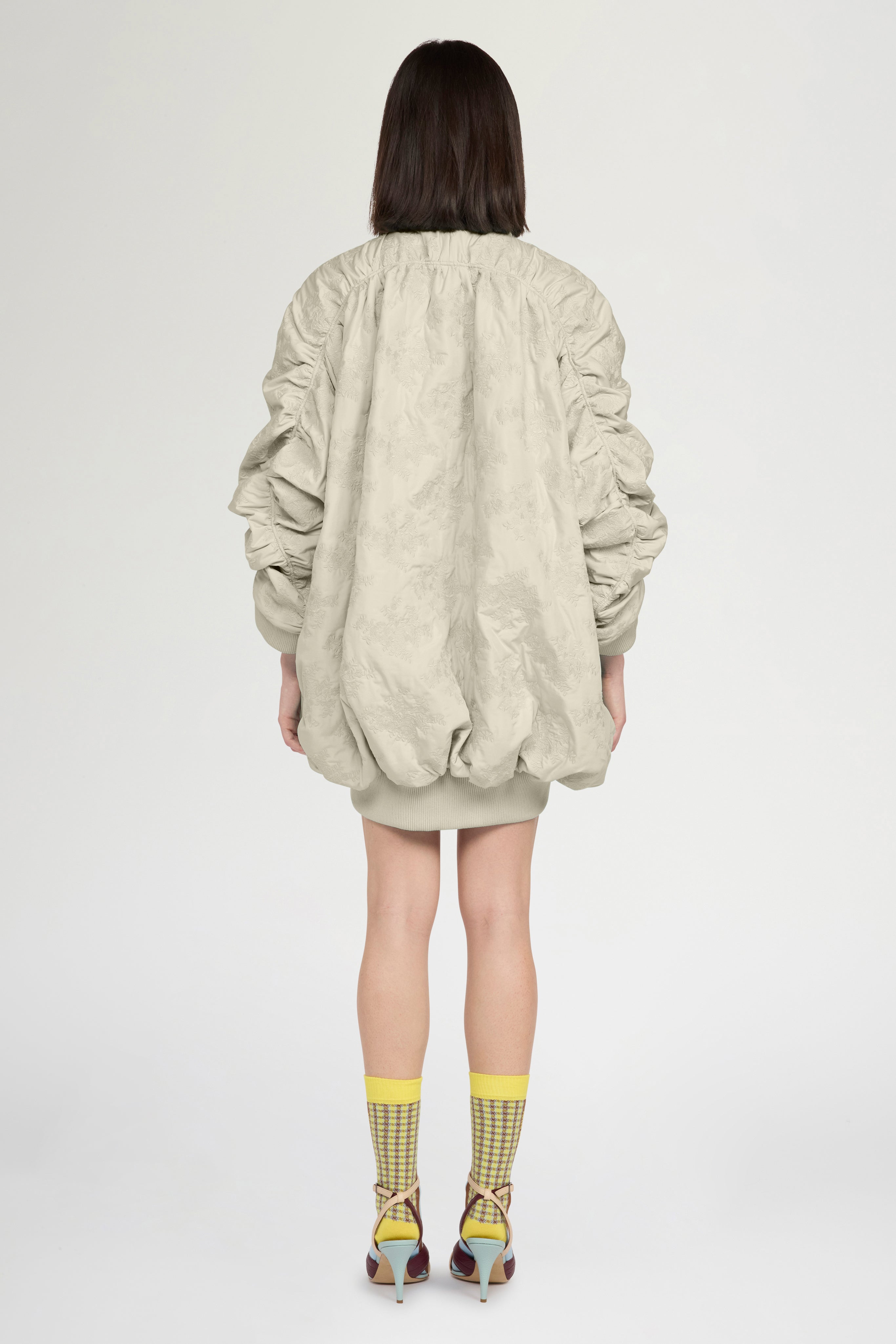 Oversized Gathered Bomber in Floral-Quilted Nylon