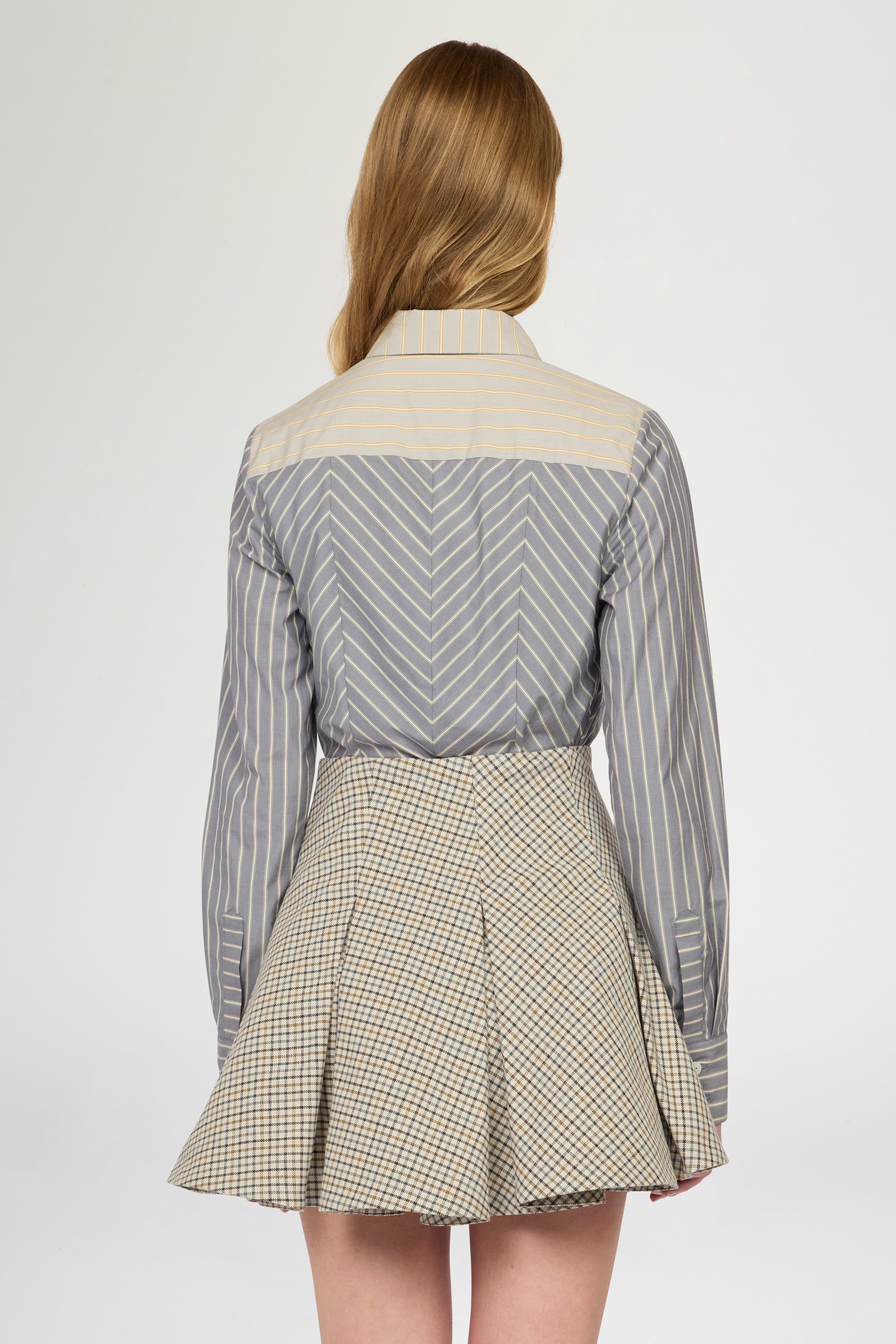 Cotton shirt with a shaped slim fit and contrasting striped insert on the chest. Bustier-effect details and high, close-fitting spear-point collar. Slim fit and regular length.
