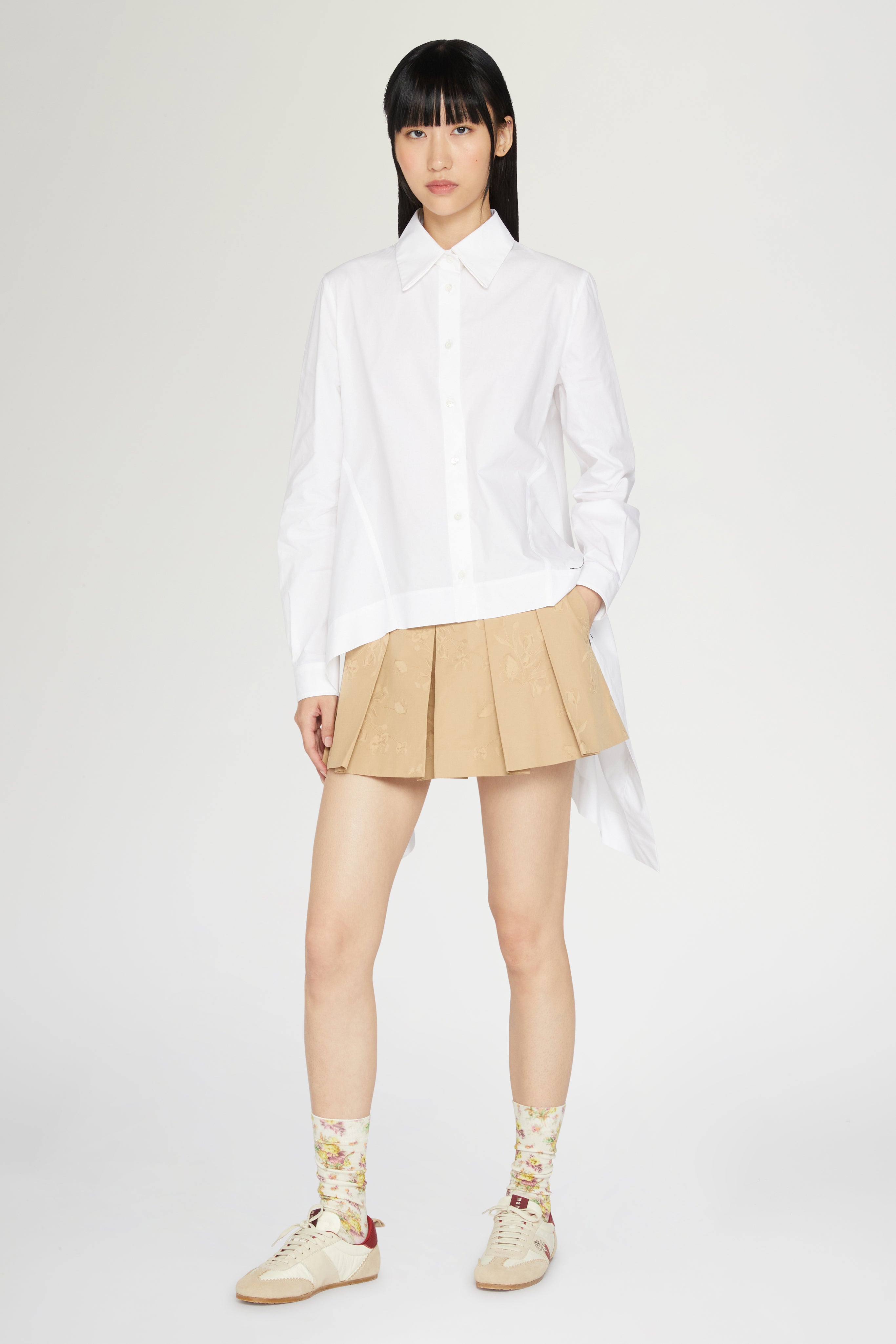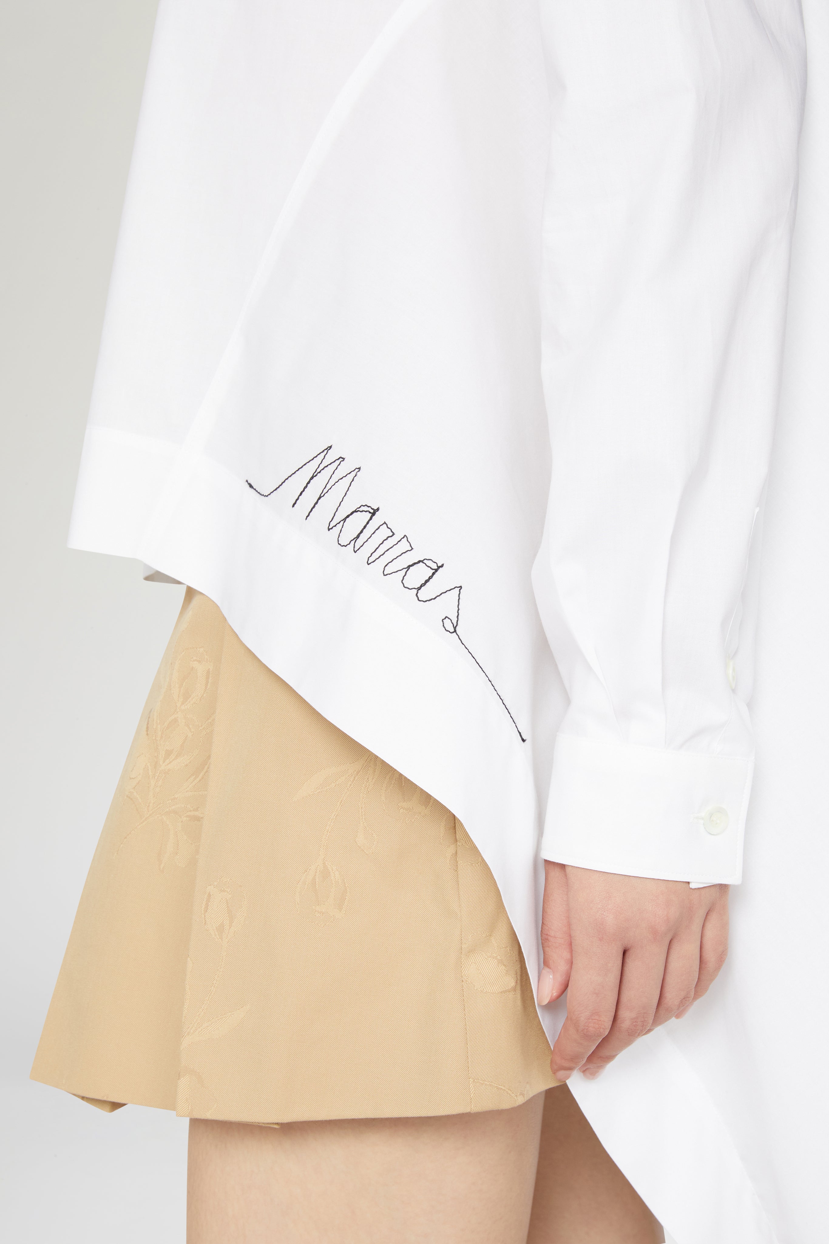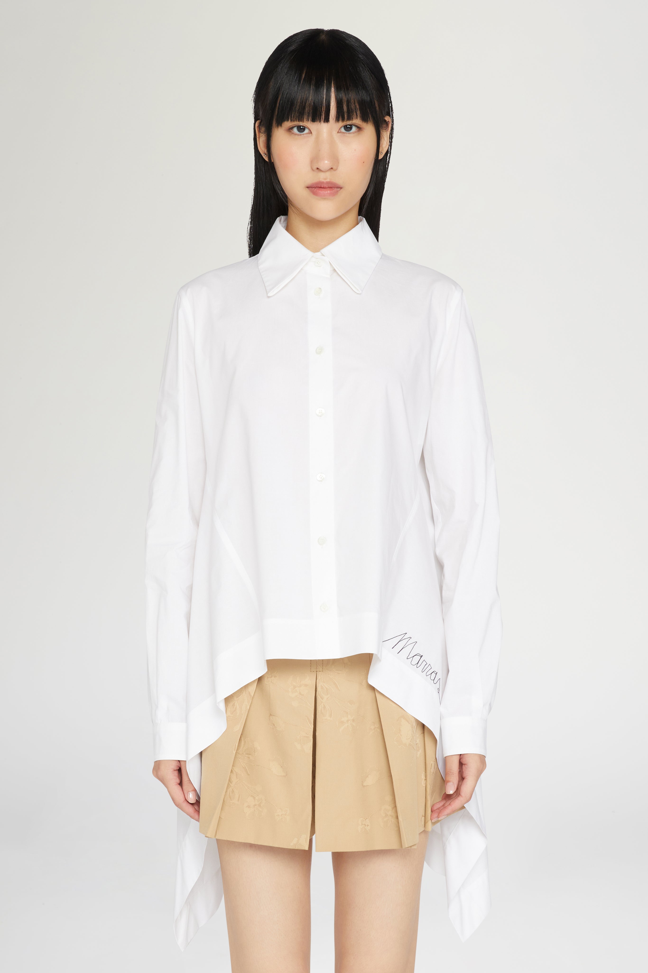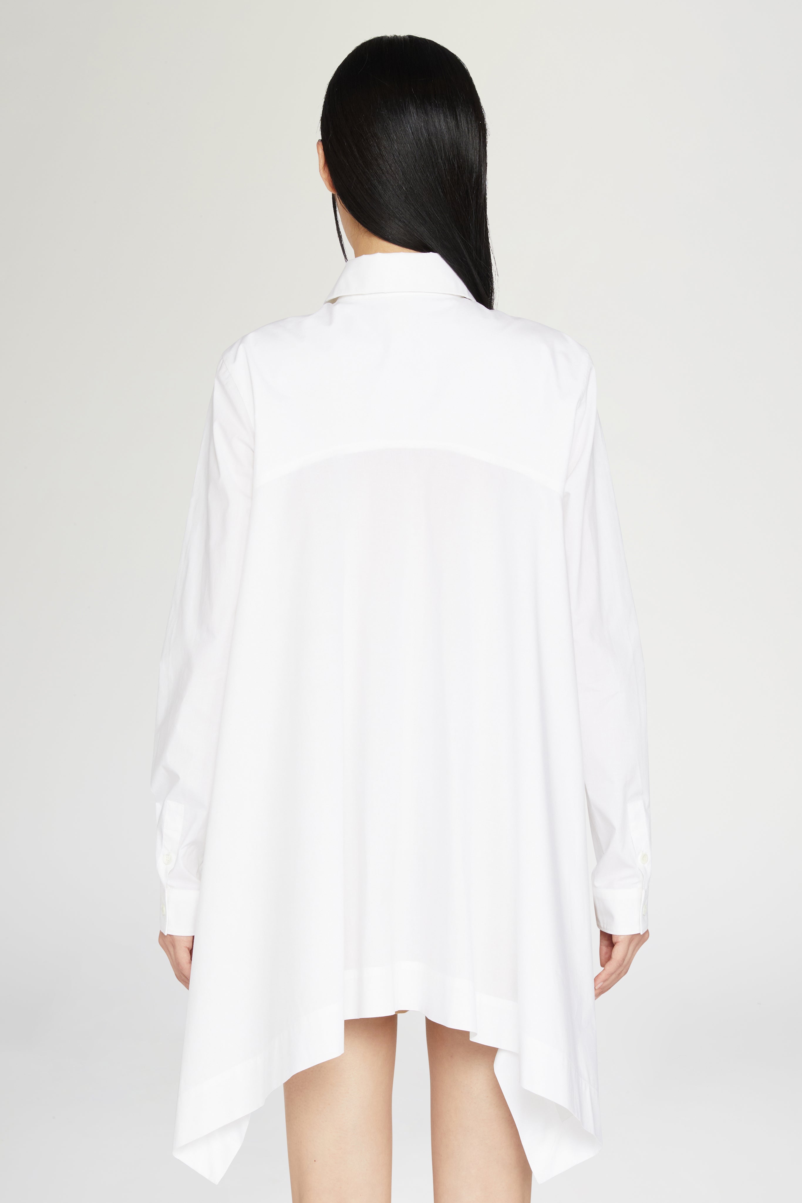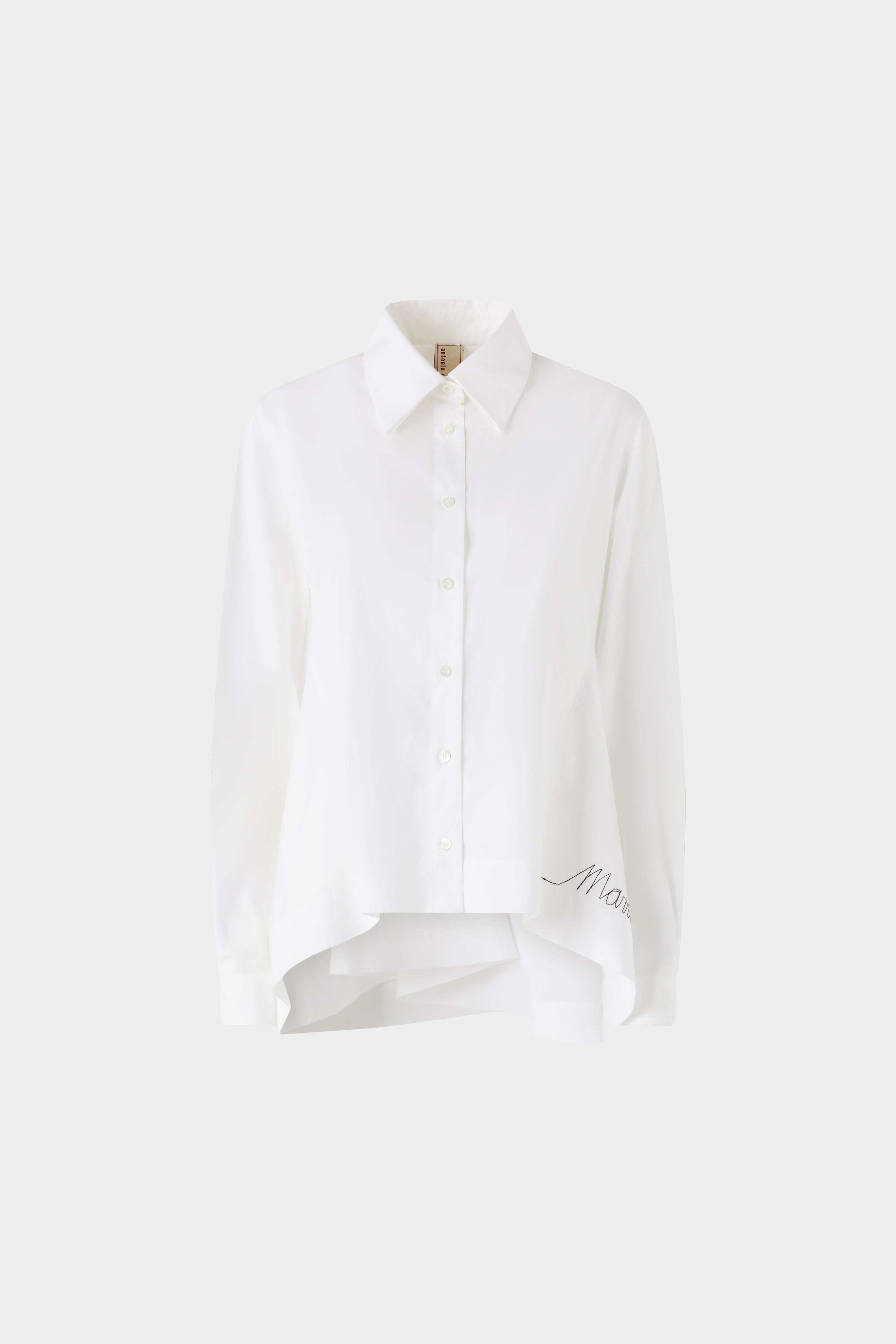 Asymmetric white shirt in 100% cotton with embroidered logo.