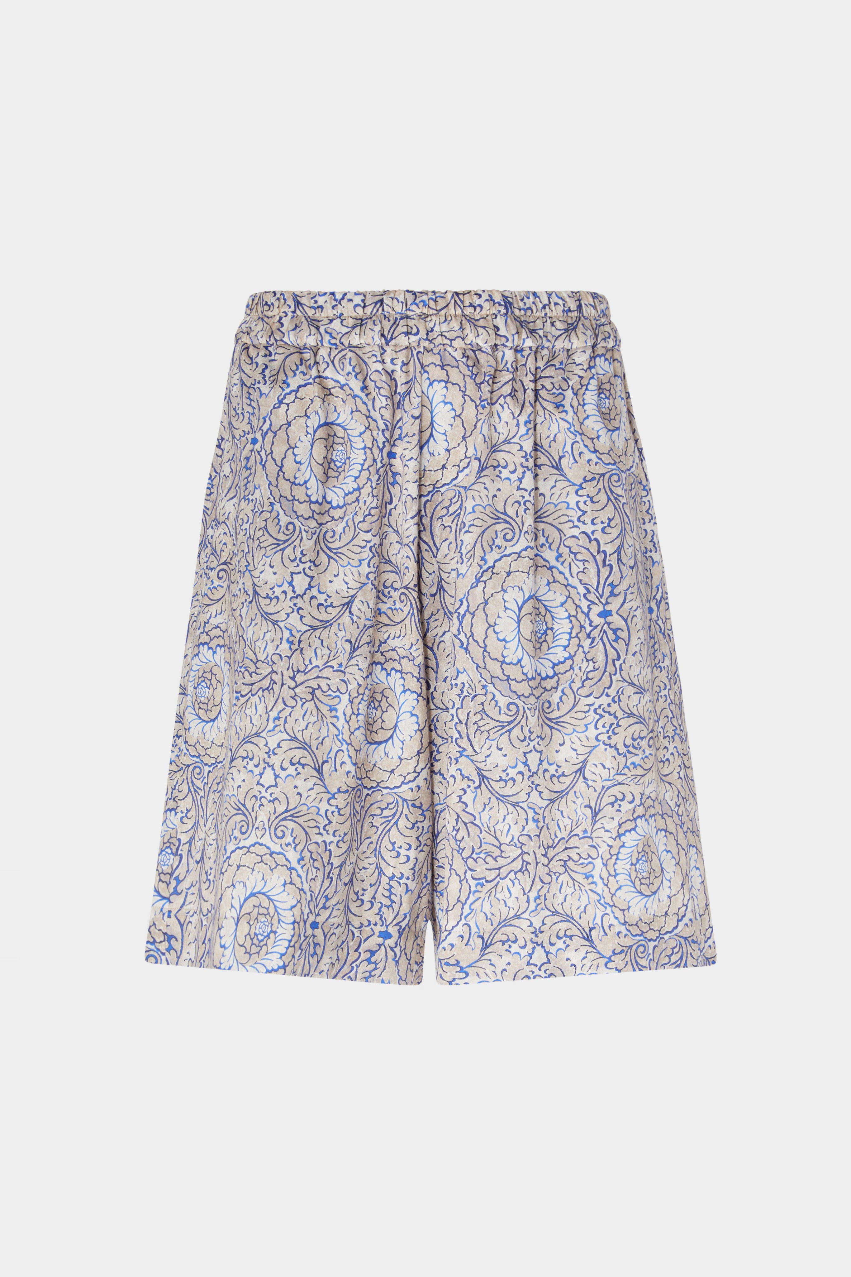 Pantaloni corti bermuda in popeline di cotone 100% con stampa integrale e vestibilità rilassata. Realizzati come un boxer, con una falsa patta nel cavallo.