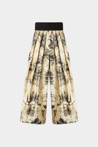 • Pantaloni palazzo a gamba larga con tasche laterali e stampa animalier.