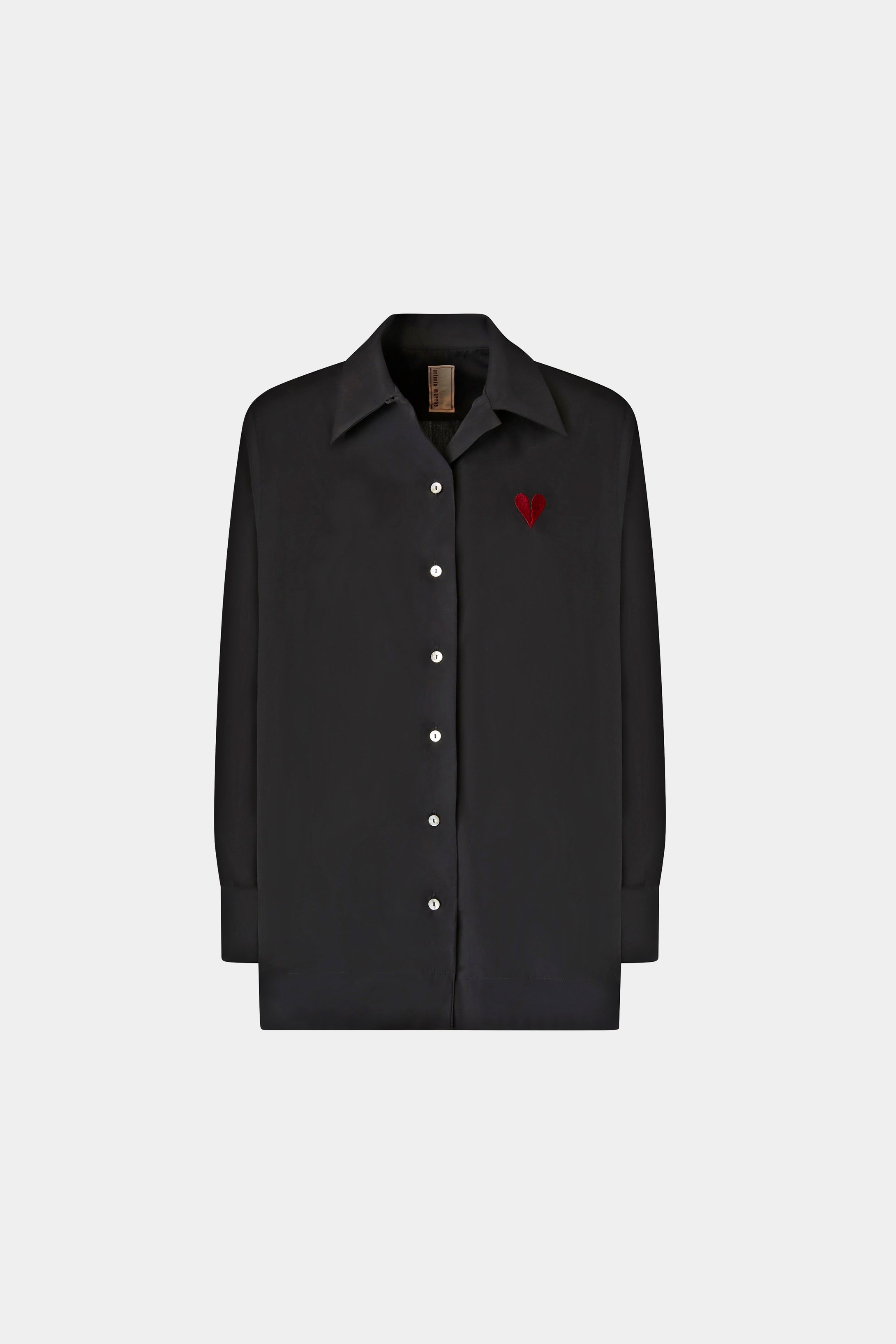 • Camicia nera oversize realizzata in 100% cotone con applicazione di cuore spezzato.