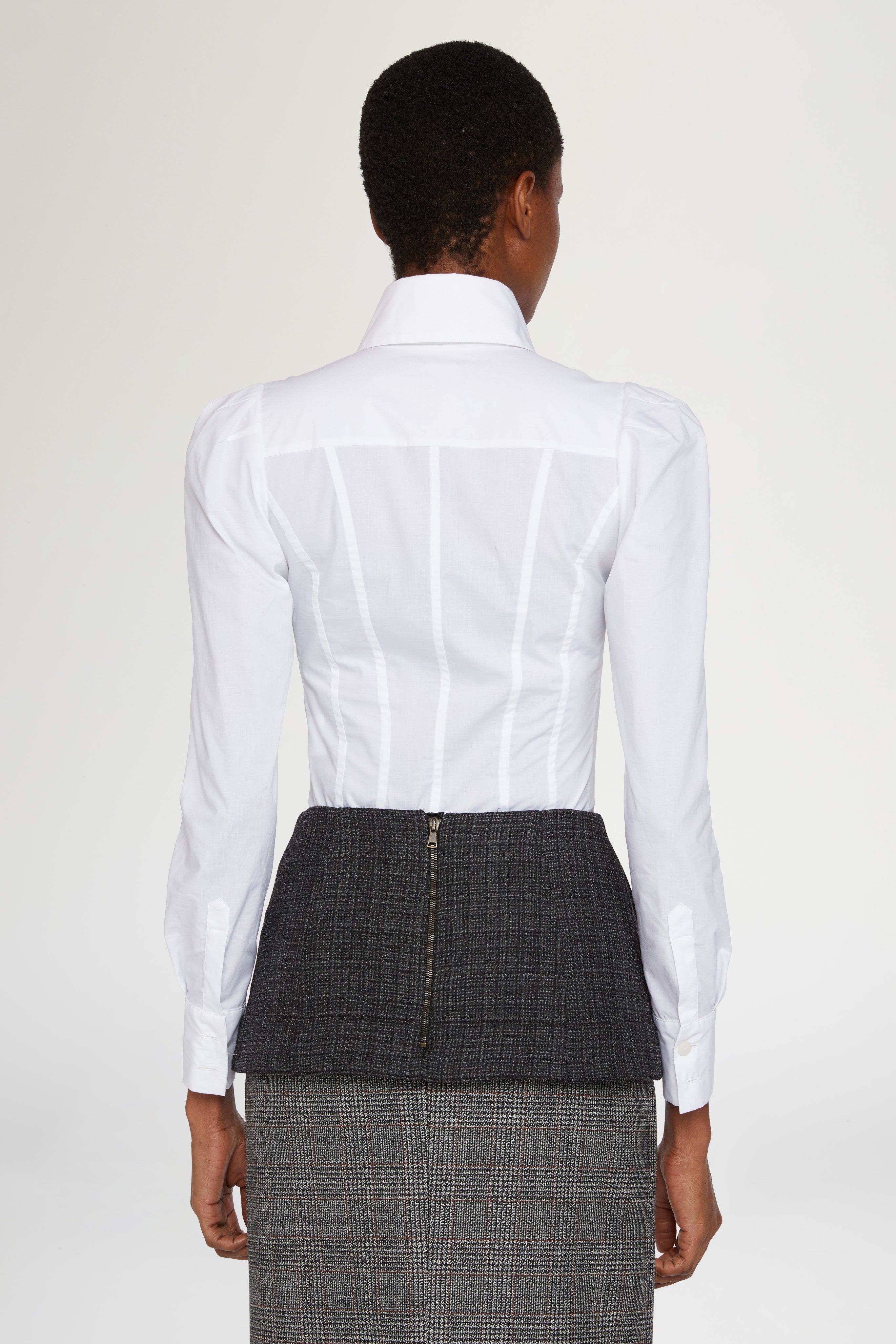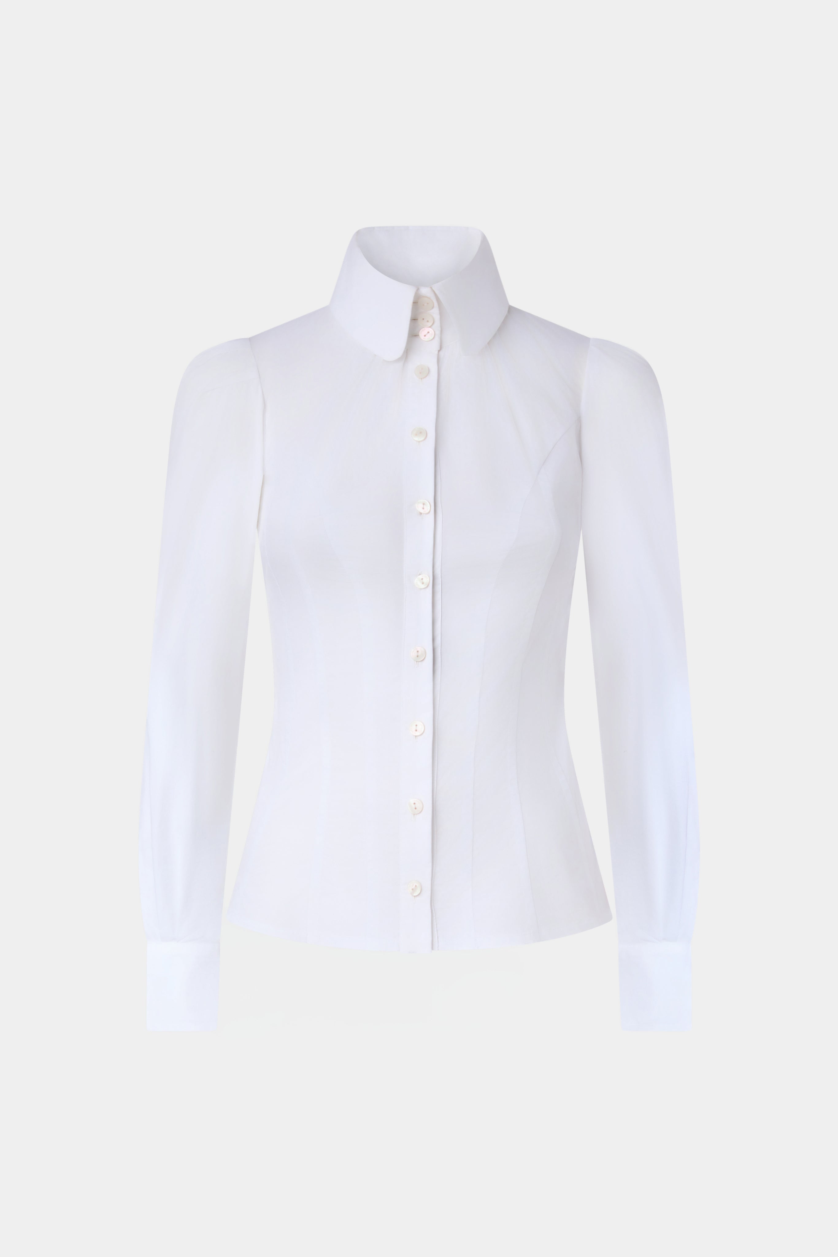• Elegante camicia bianca realizzata in 100% cotone, con una vestibilità slim sagomata e cuciture strutturate. Realizzata con maniche lunghe, polsini con bottoni e un colletto classico per un'eleganza senza tempo.
