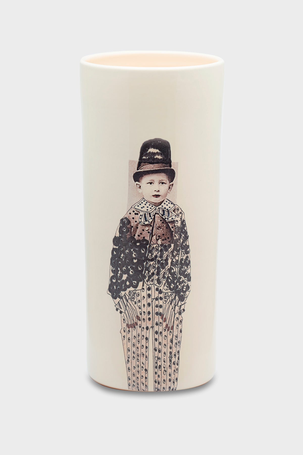 Fa parte della serie “I Fratelli Pois”, Fratelli Pois: stoviglie in ceramica decorate con illustrazioni di Antonio Marras, che vengono replicate sulla superficie degli oggetti con la tecnica detta decalcomania.