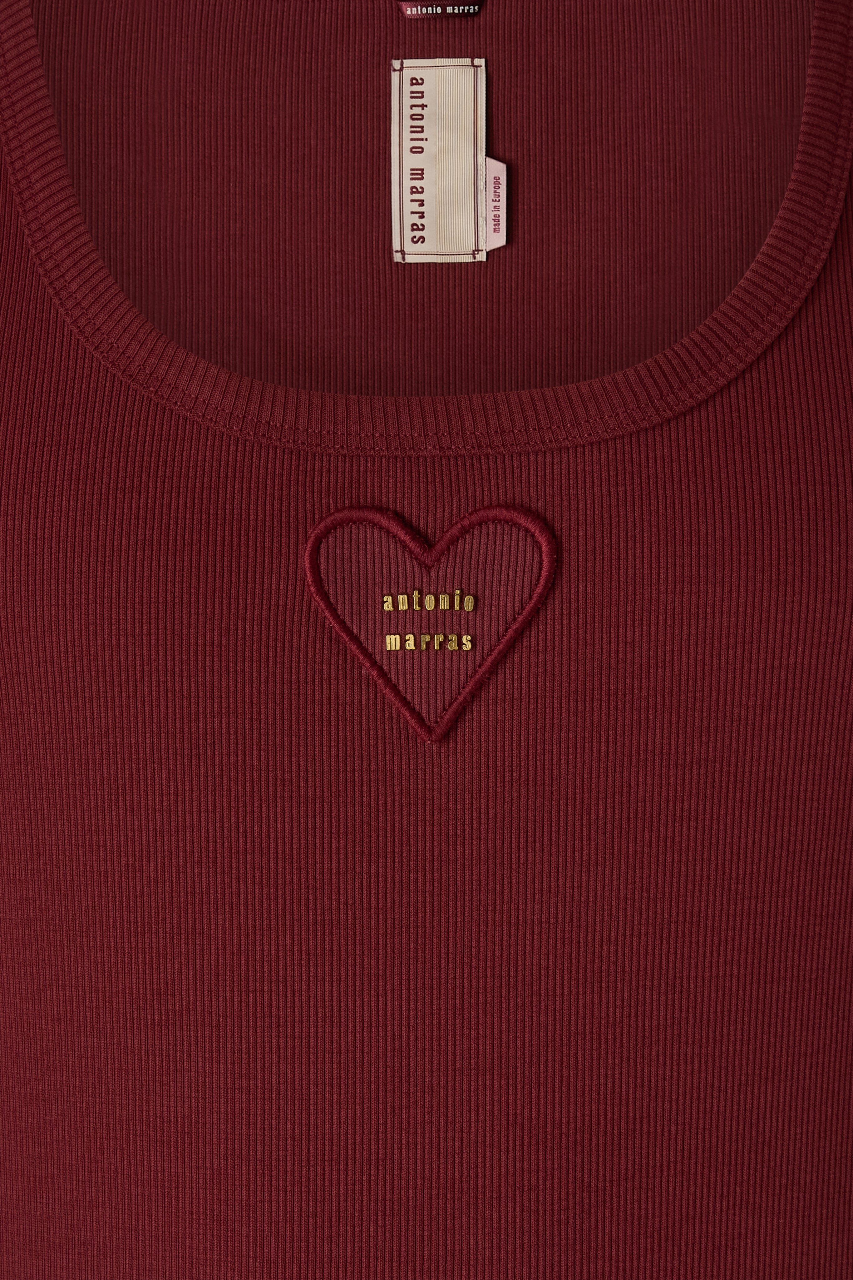 Unisex tank top NUDA VERITAS in soft stretch cotton with ribbed texture. Features a heart embroidery with a gold logo appliqué.