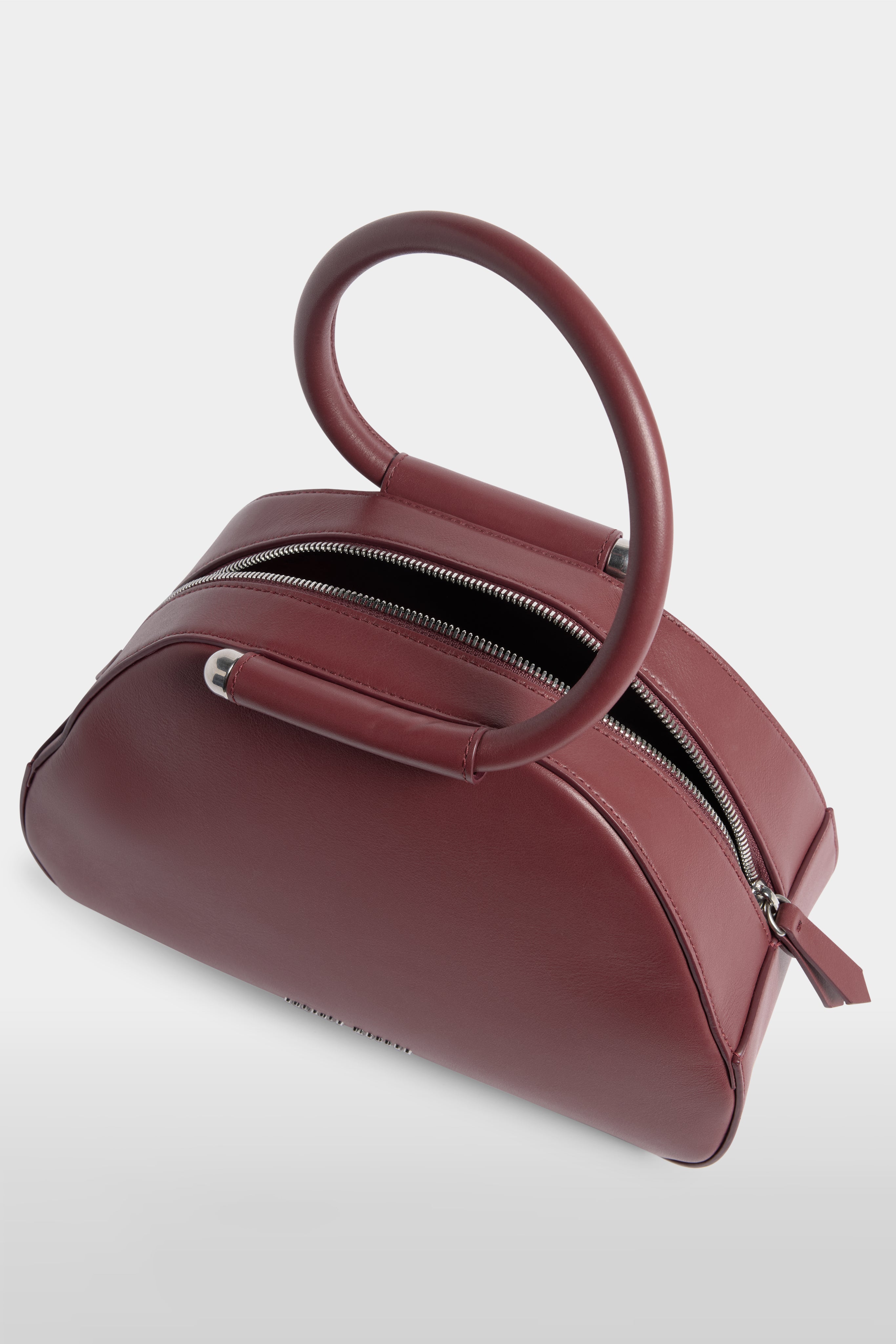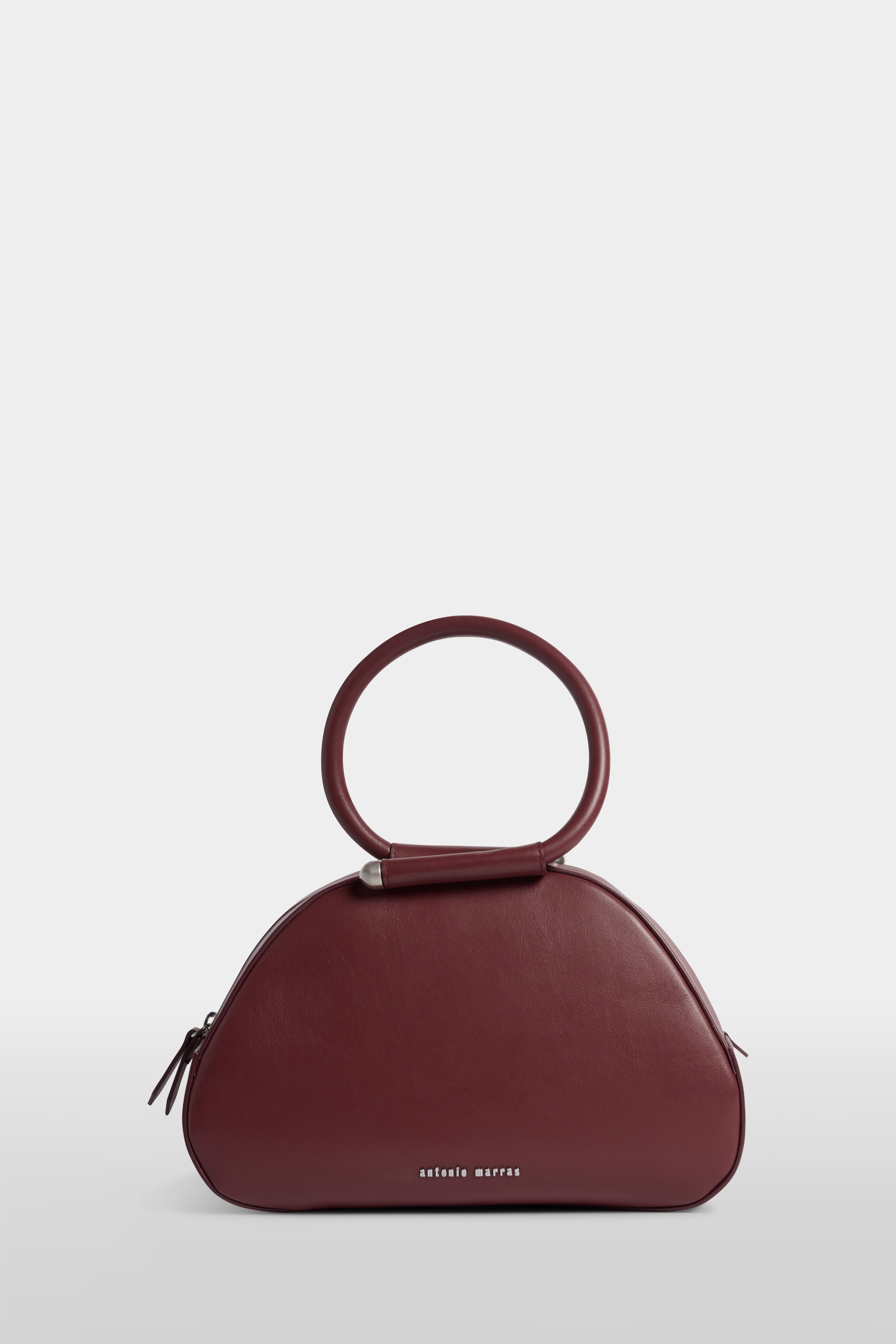 • The Caragol Bag features a compact, organic shape with soft lines and a balanced construction between volume and lightness, making it immediately recognizable. It is crafted from full-grain burgundy nappa leather, selected for its natural grain and distinctive softness to the touch. Entirely Made in Italy, it is the result of an artisanal process that combines careful construction with precise execution. Top closure with metal zip and Antonio Marras logo applied on the front.