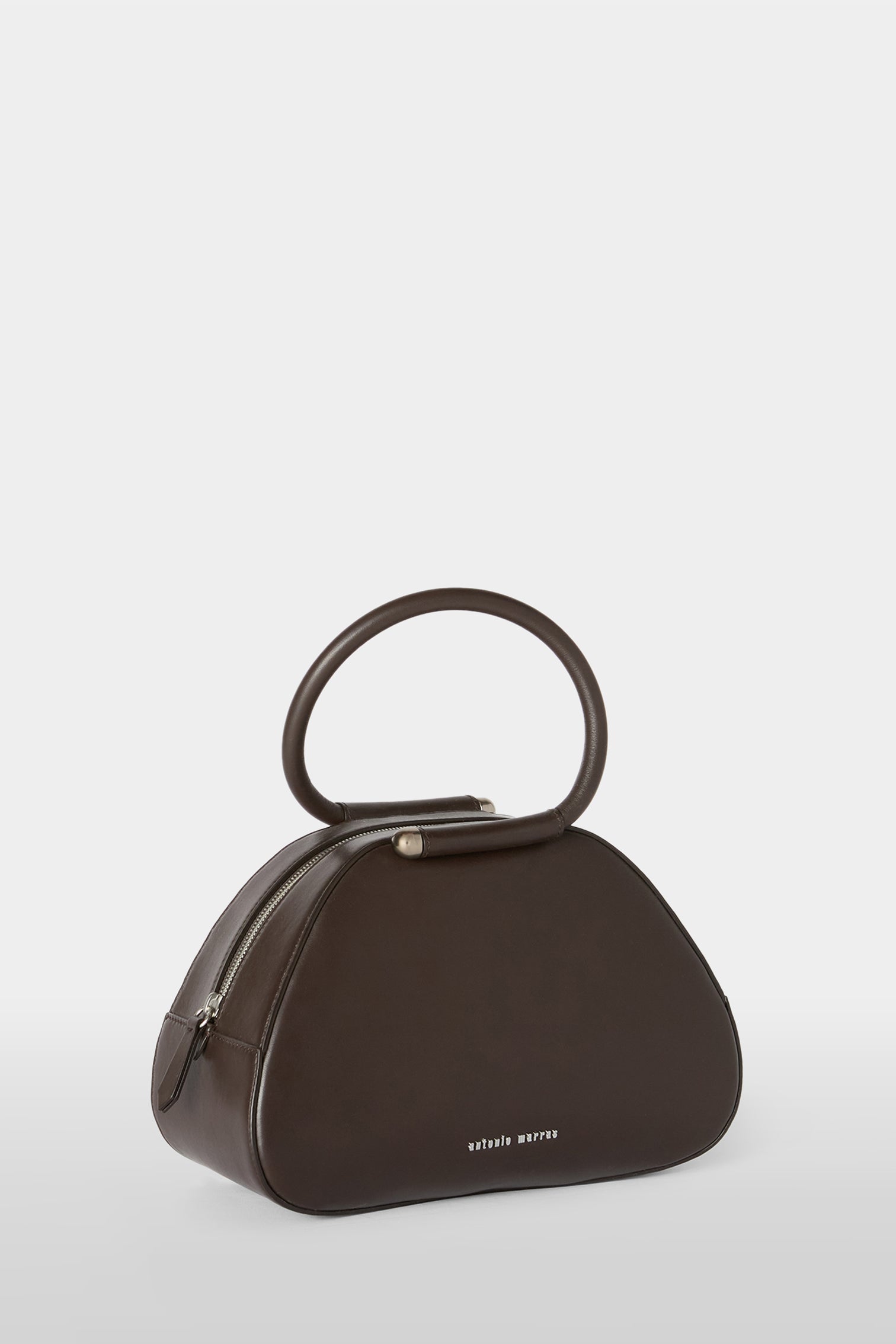 The Caragol Bag features a compact, organic shape with soft lines and a balanced construction between volume and lightness, making it immediately recognizable. It is crafted from full-grain brown nappa leather, selected for its natural grain and distinctive softness to the touch. Entirely Made in Italy, it is the result of an artisanal process that combines careful construction with precise execution. Top closure with metal zip and Antonio Marras logo applied on the front.