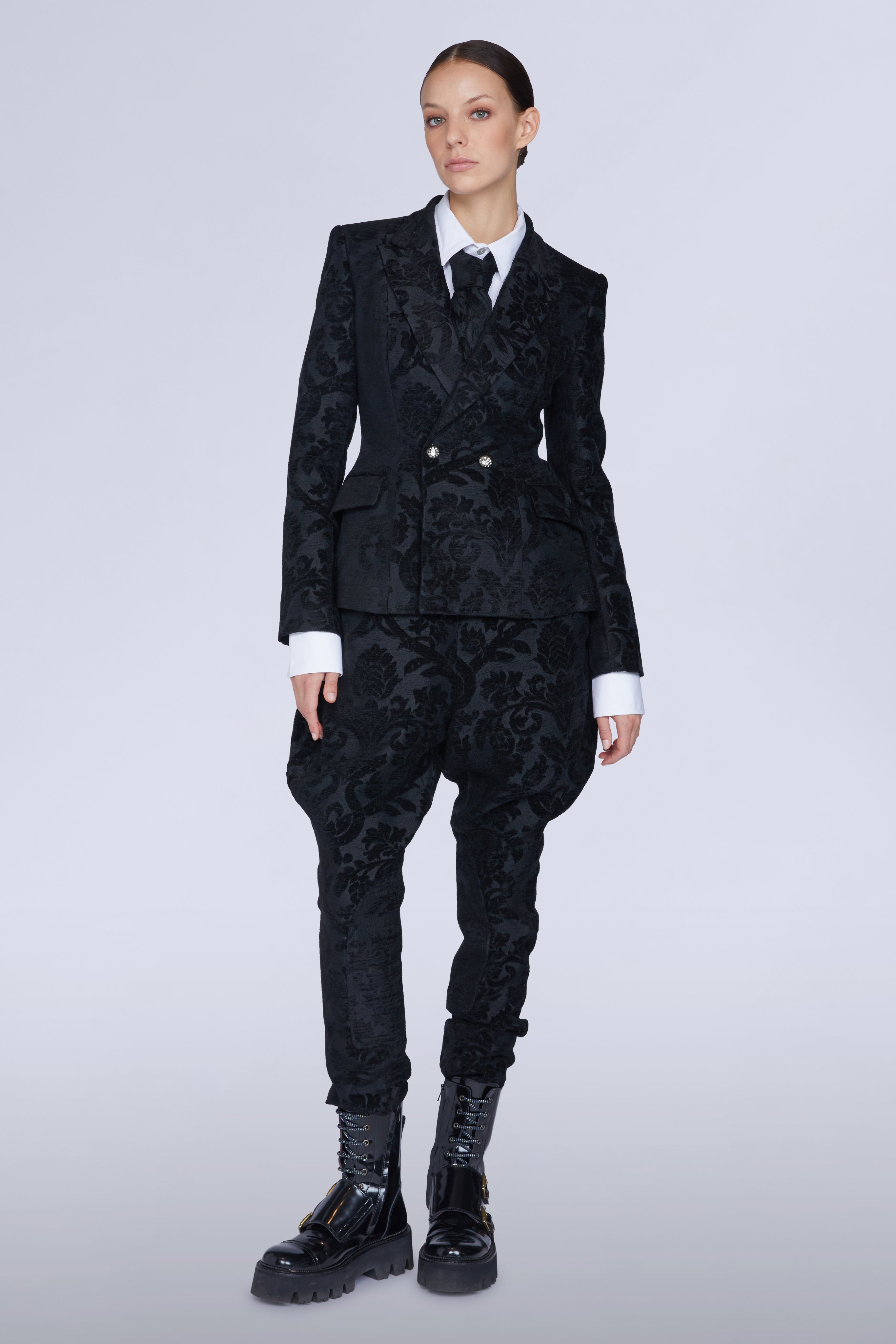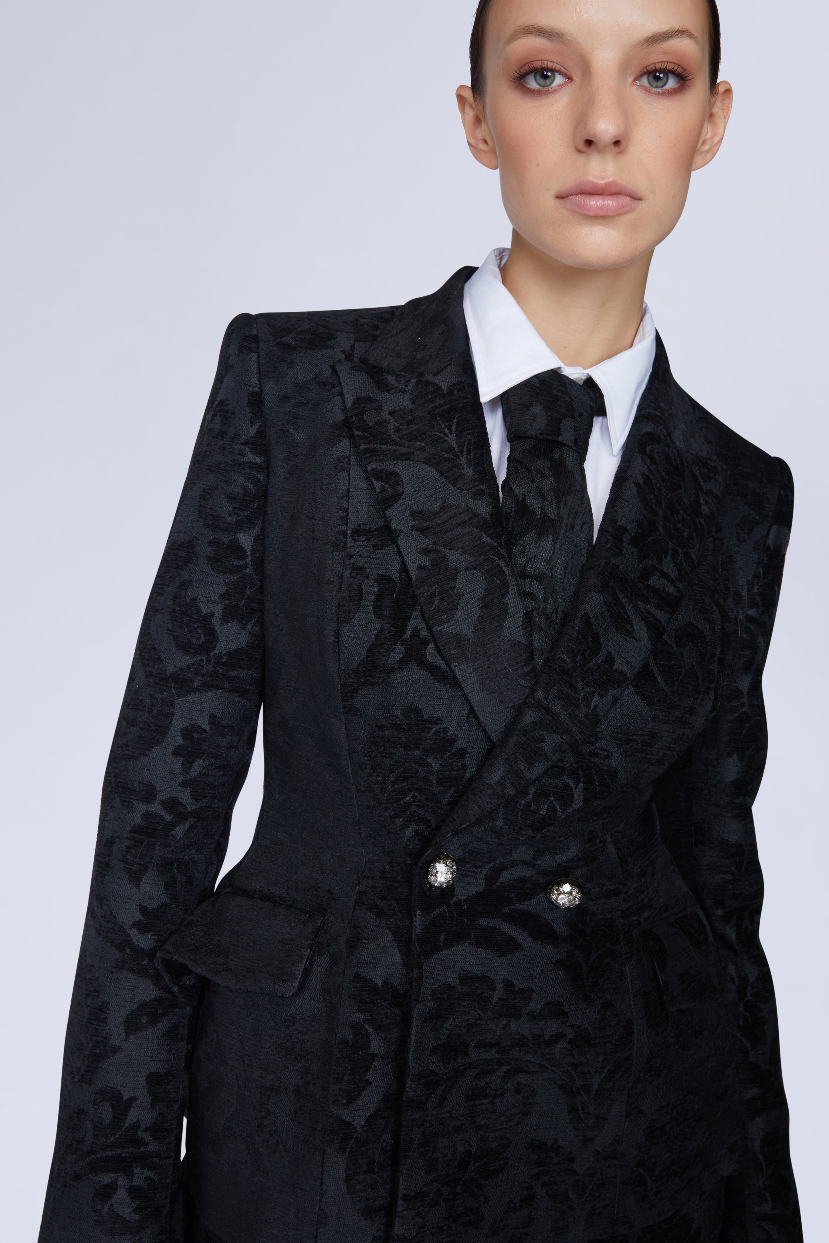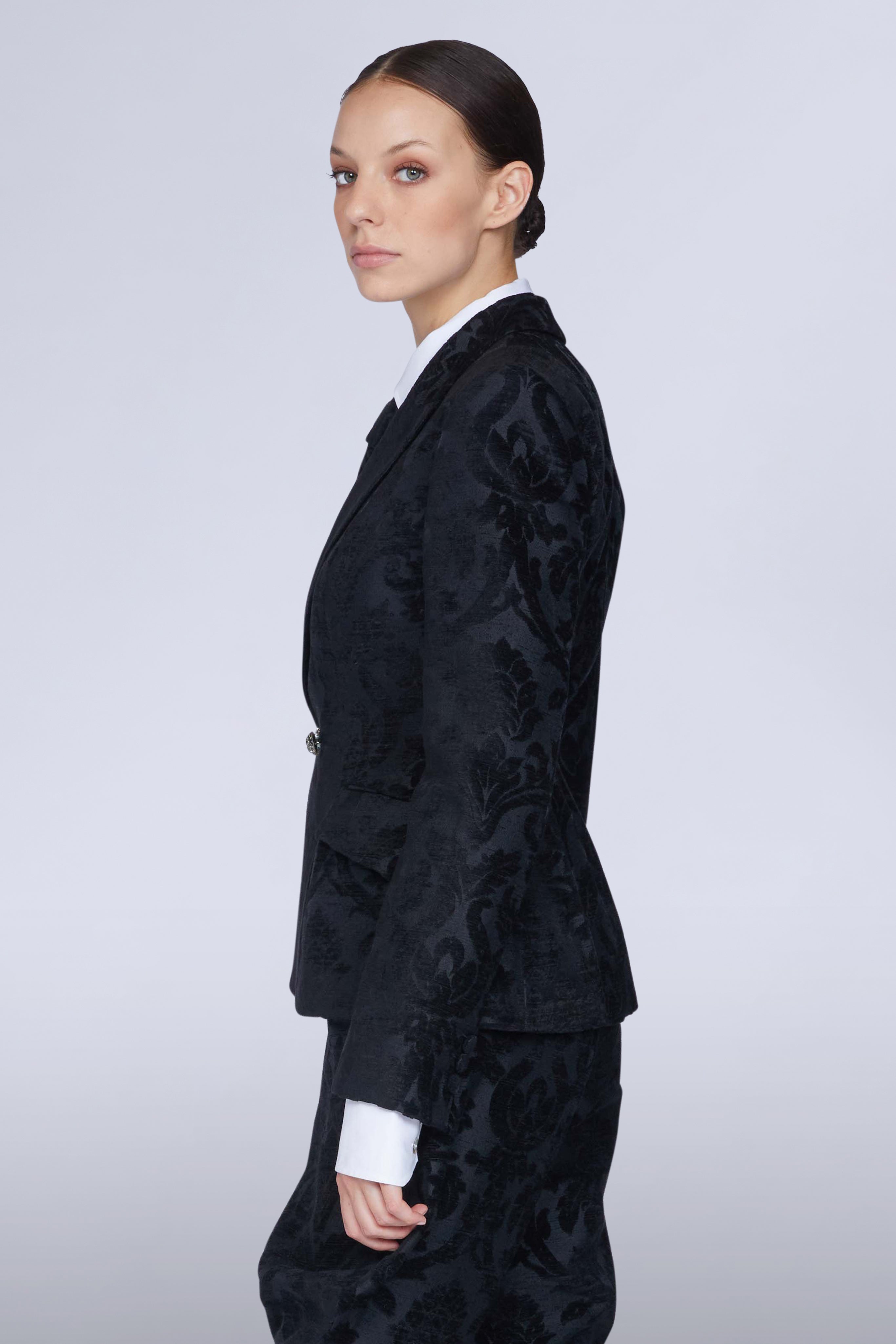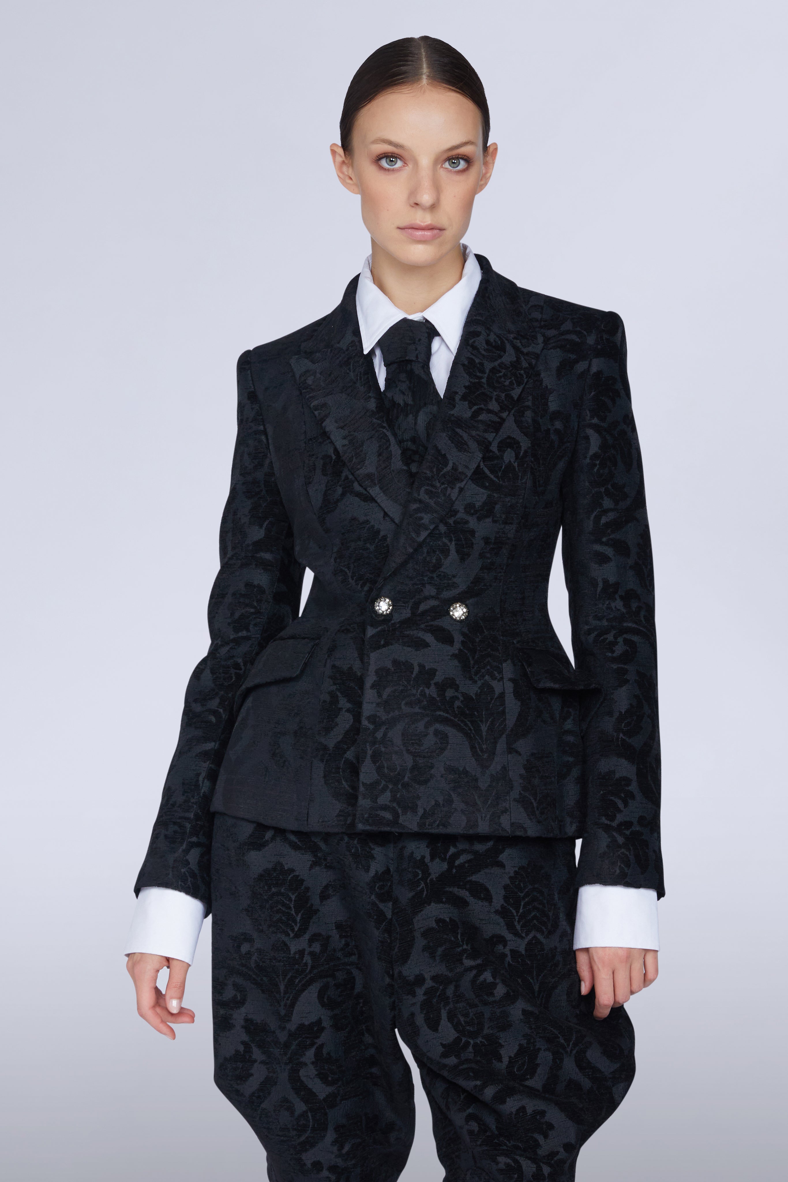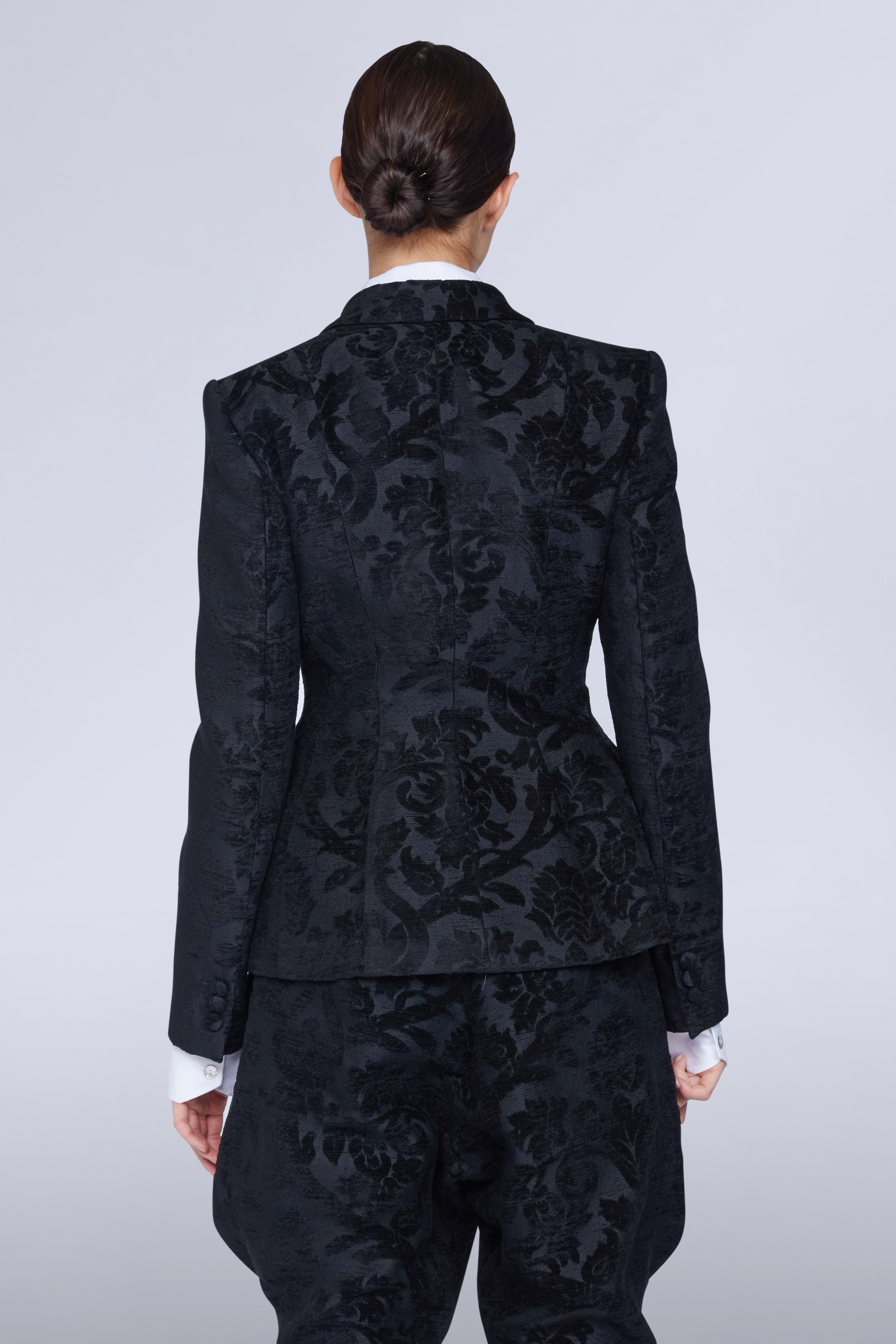 The Nobel jacket is tailored in Italy and constucted into a retro silhouette due to its clinched waist and voluminous hem. A statement piece to wear over black tailored pants for an effortlessely chic and luxurious look.