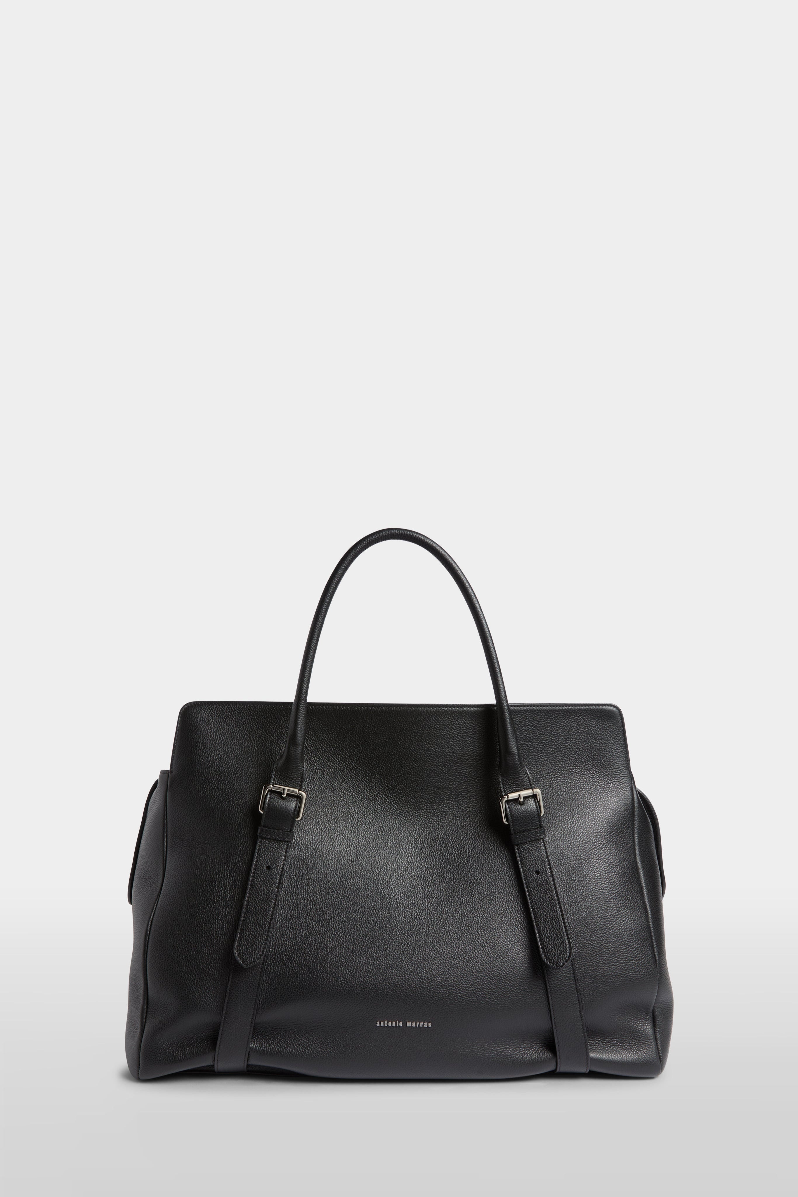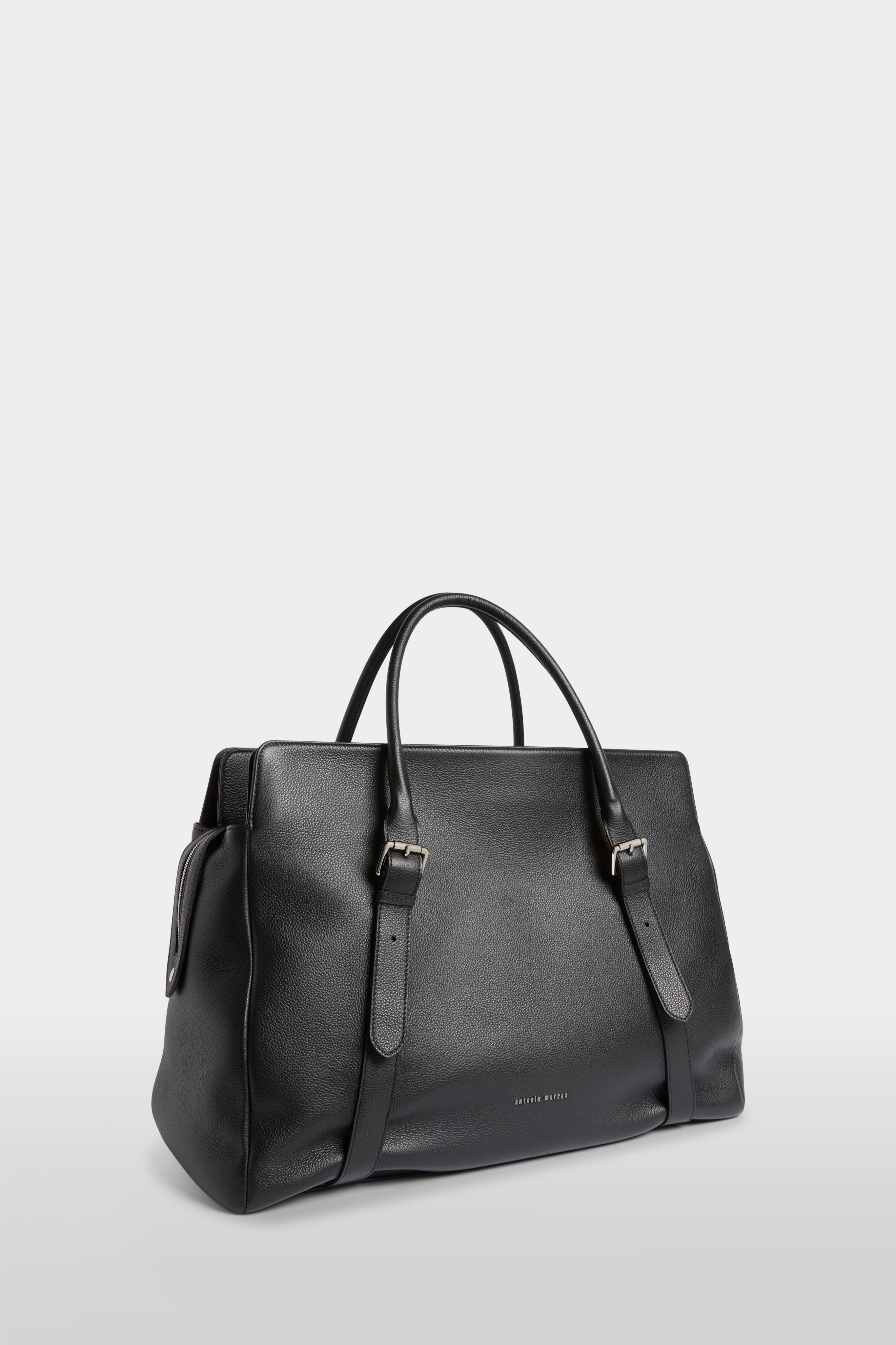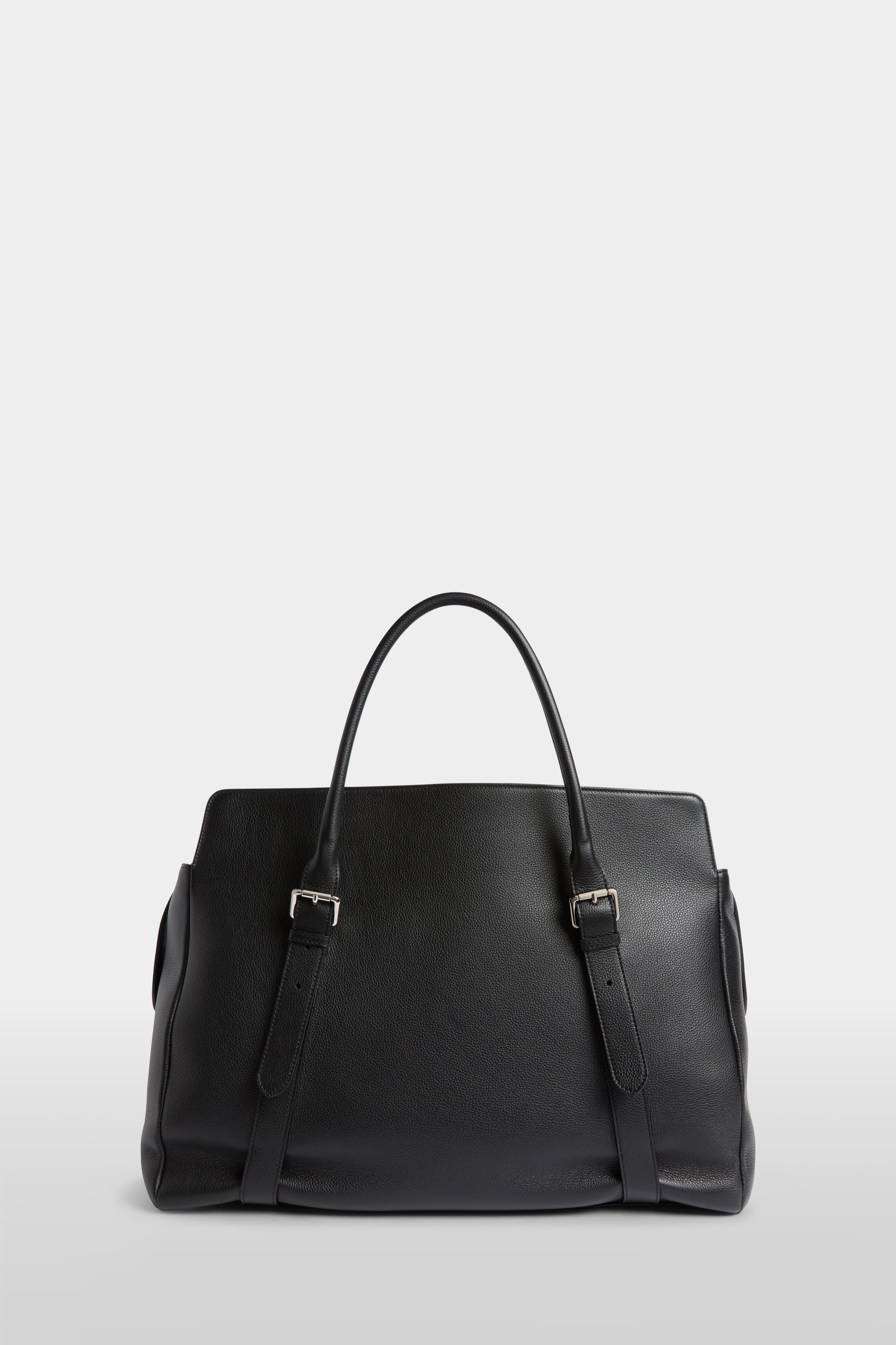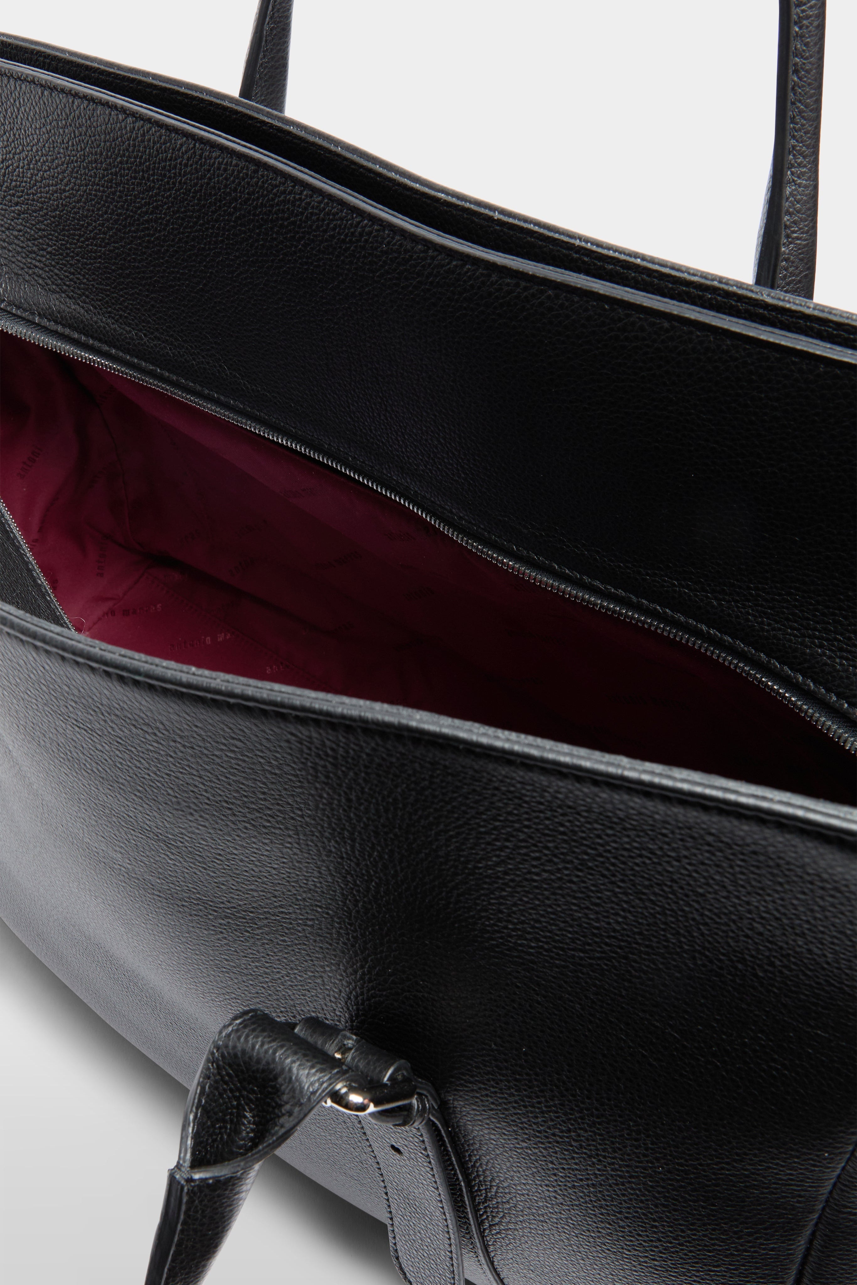Spacious tote bag in 100% bovine leather with a structured silhouette and grainy texture. Designed with double top handles, adjustable buckle straps, and a roomy interior with zip closure. A timeless everyday bag combining elegance and practicality.