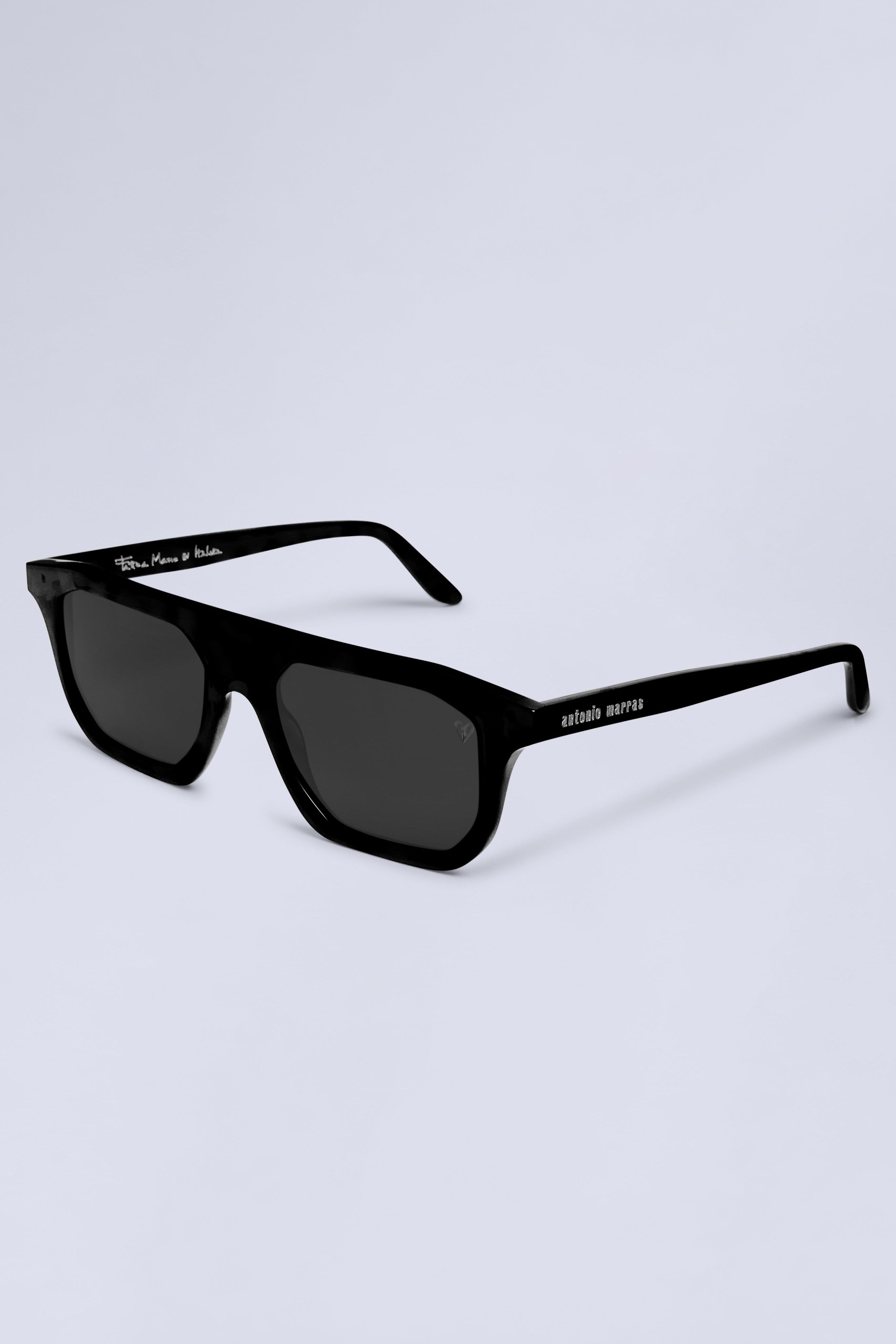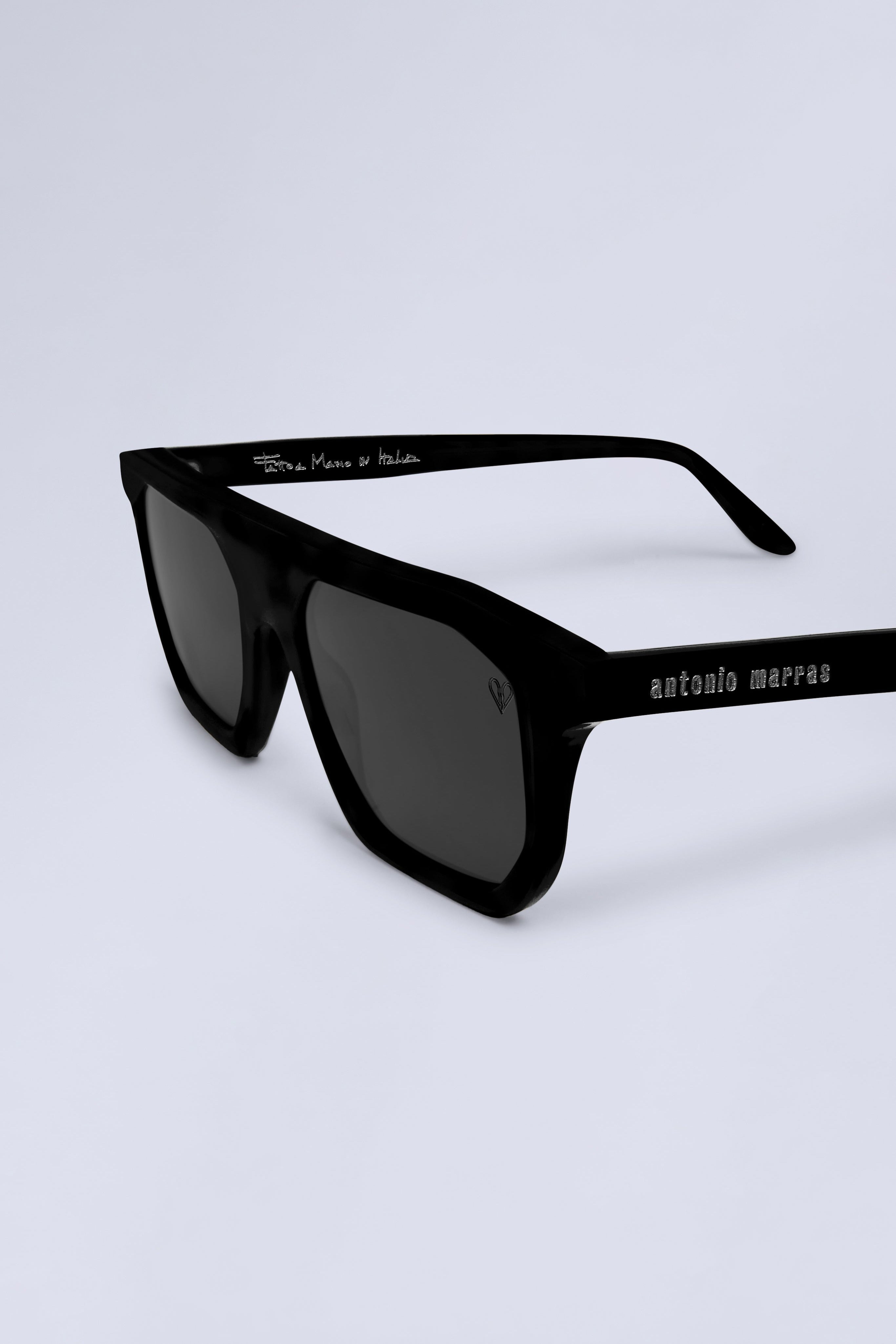 • Mask-style glasses made of high-quality dark acetate with engraved logo.