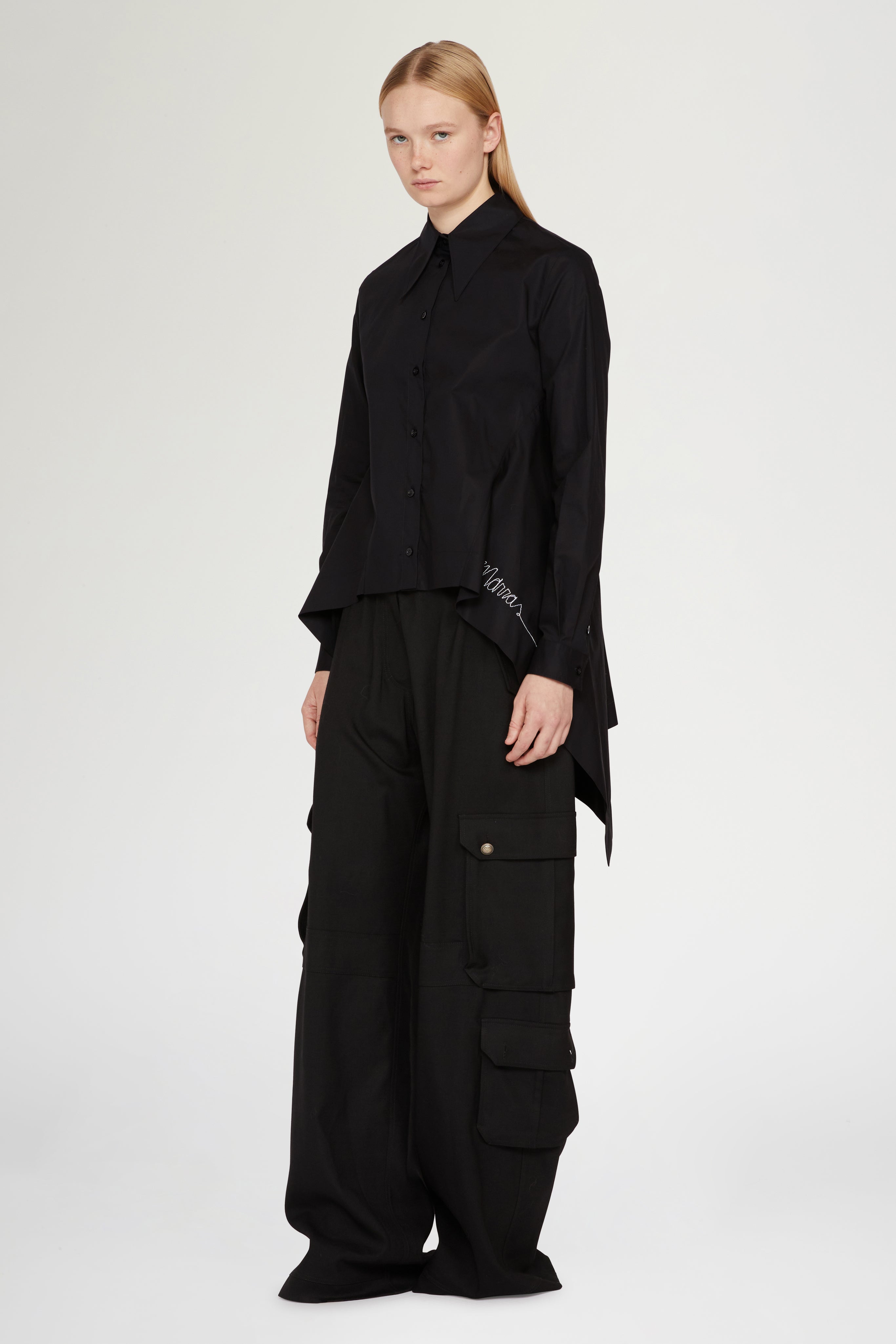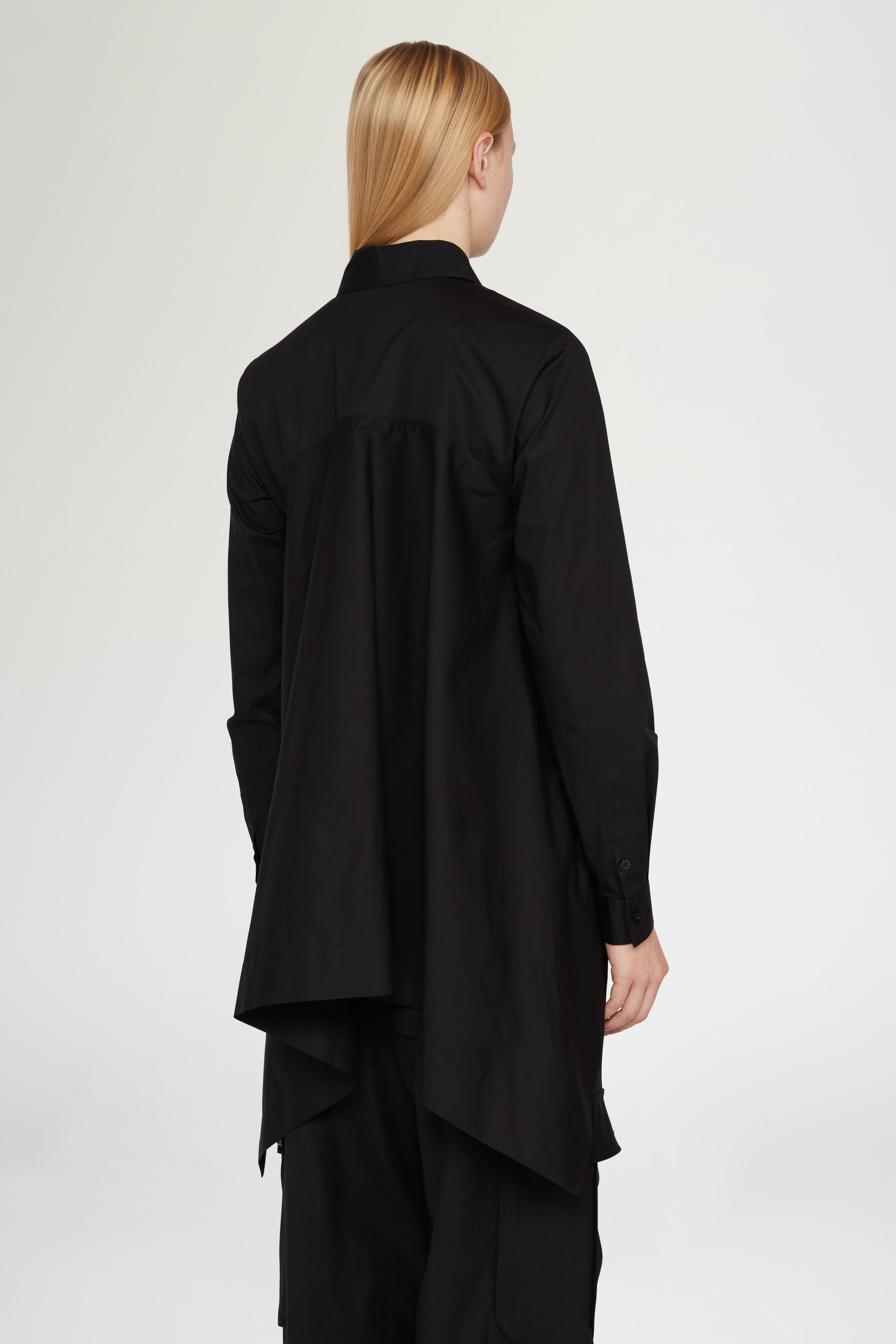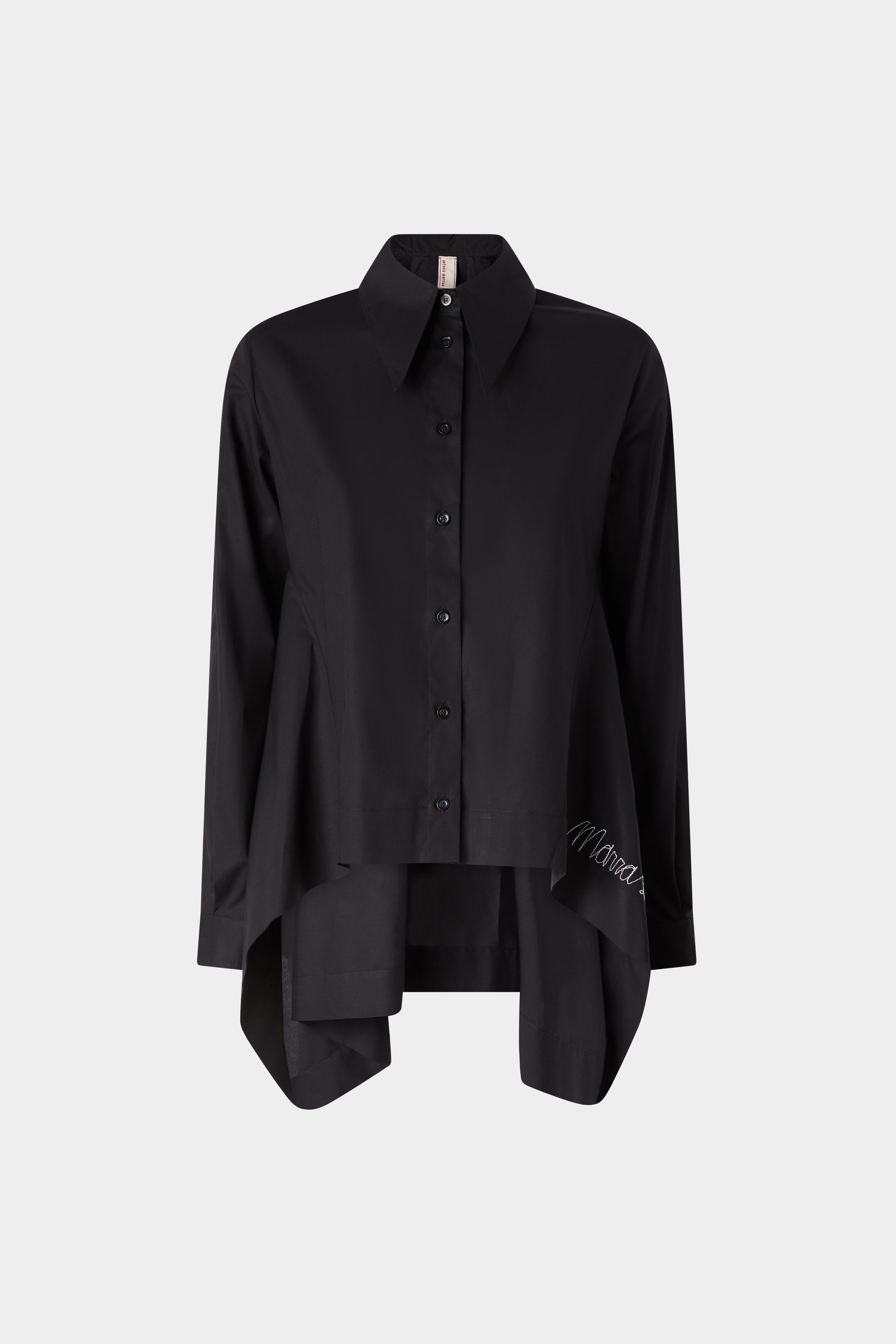 Asymmetric black shirt in 100% cotton with embroidered logo.