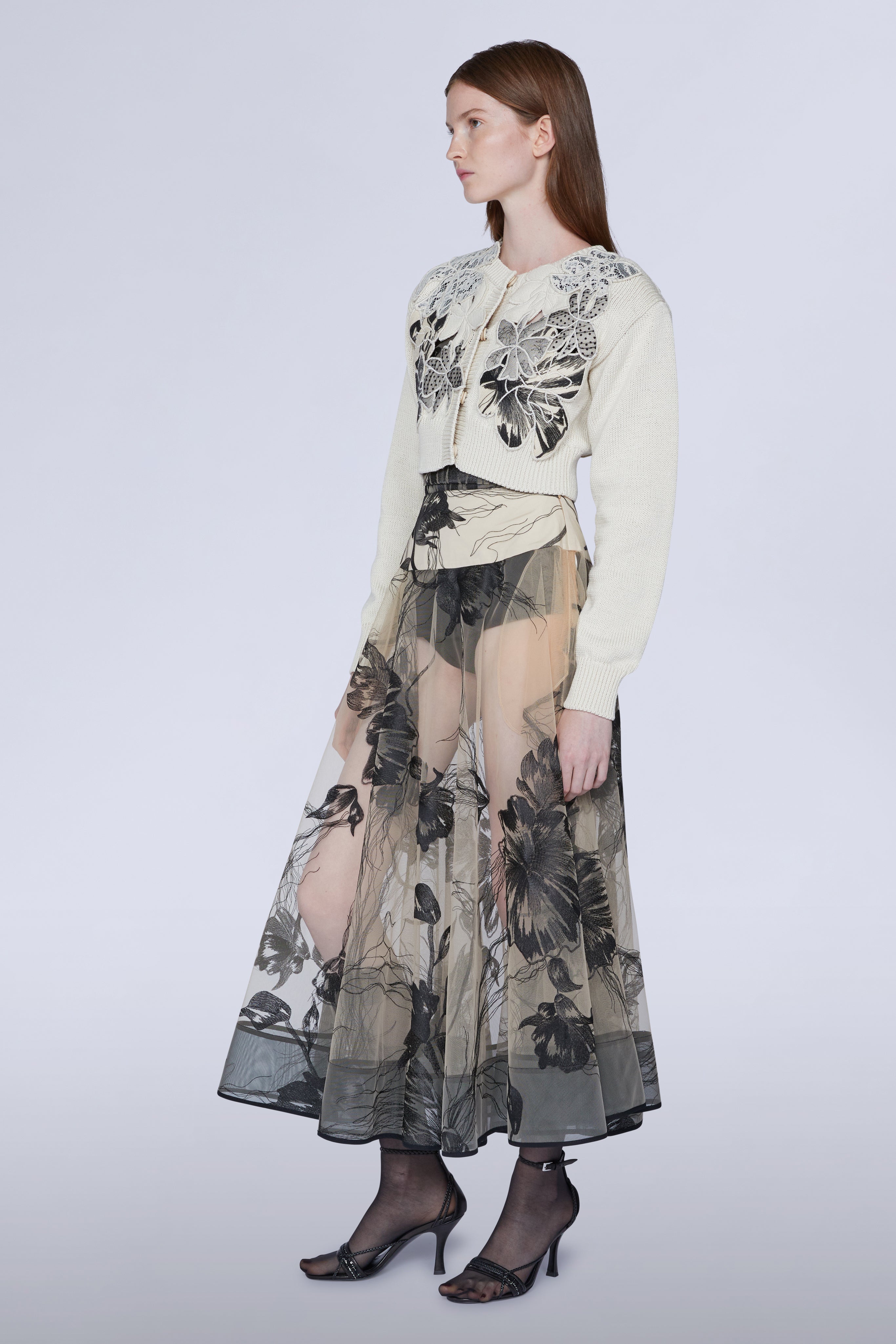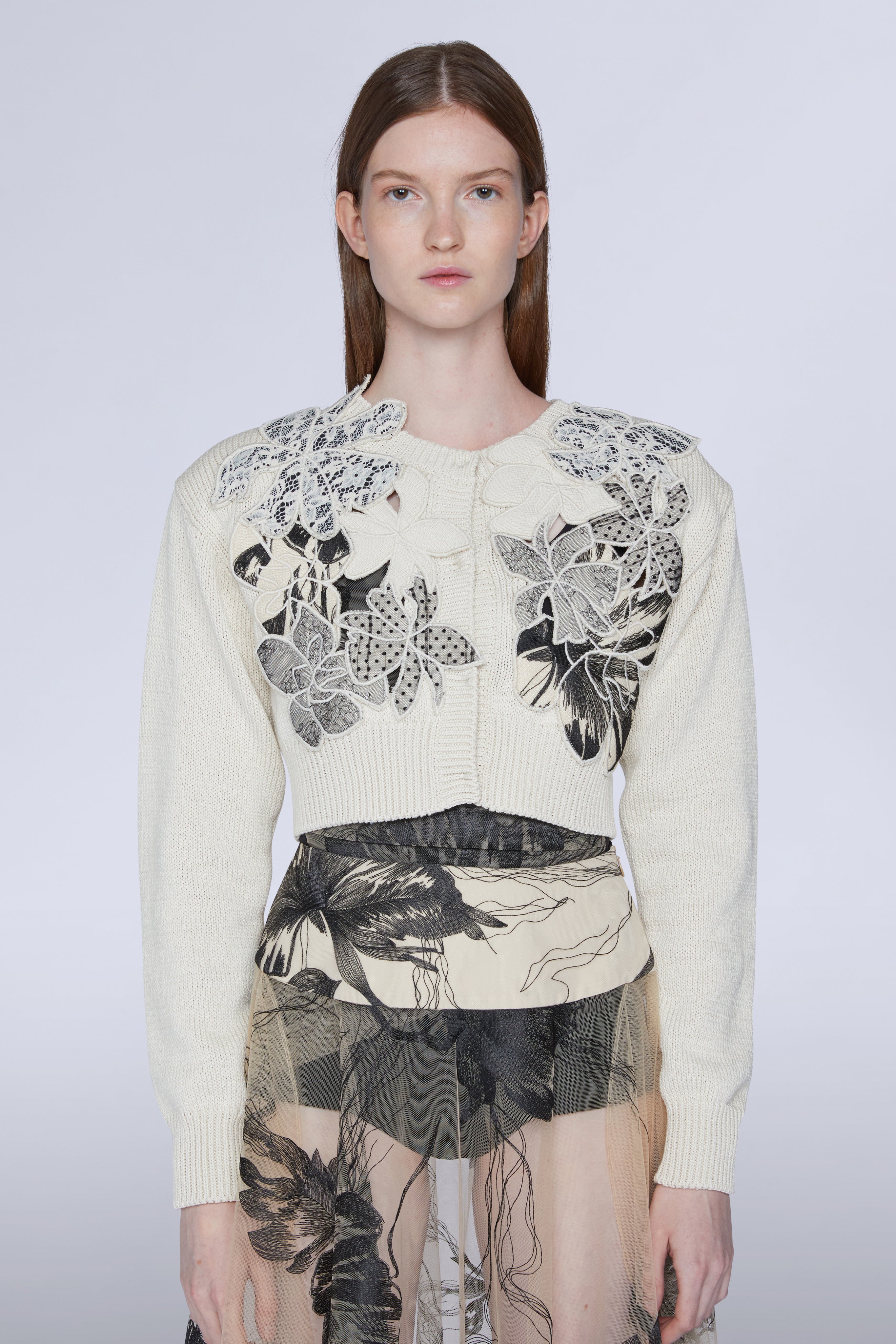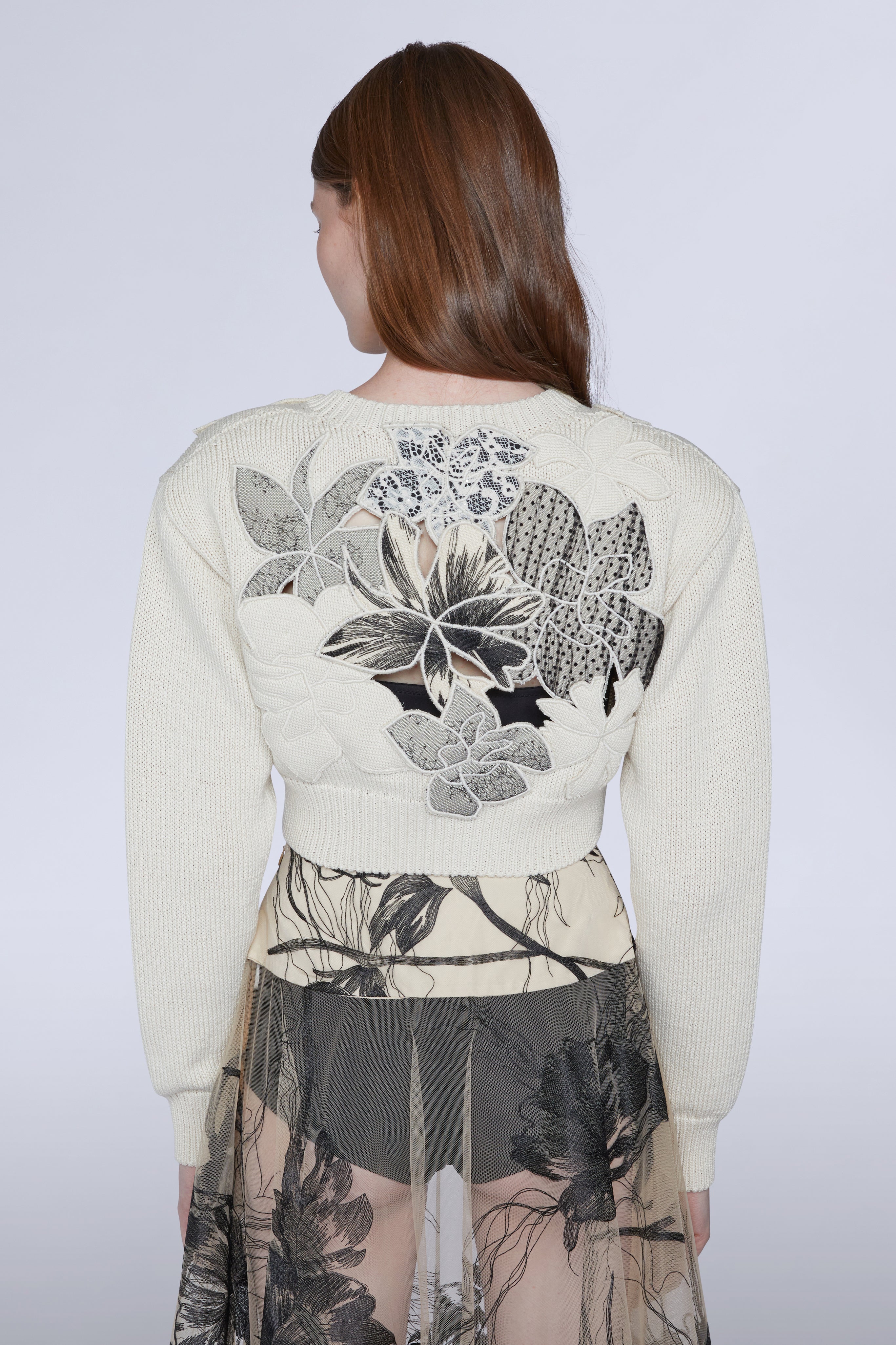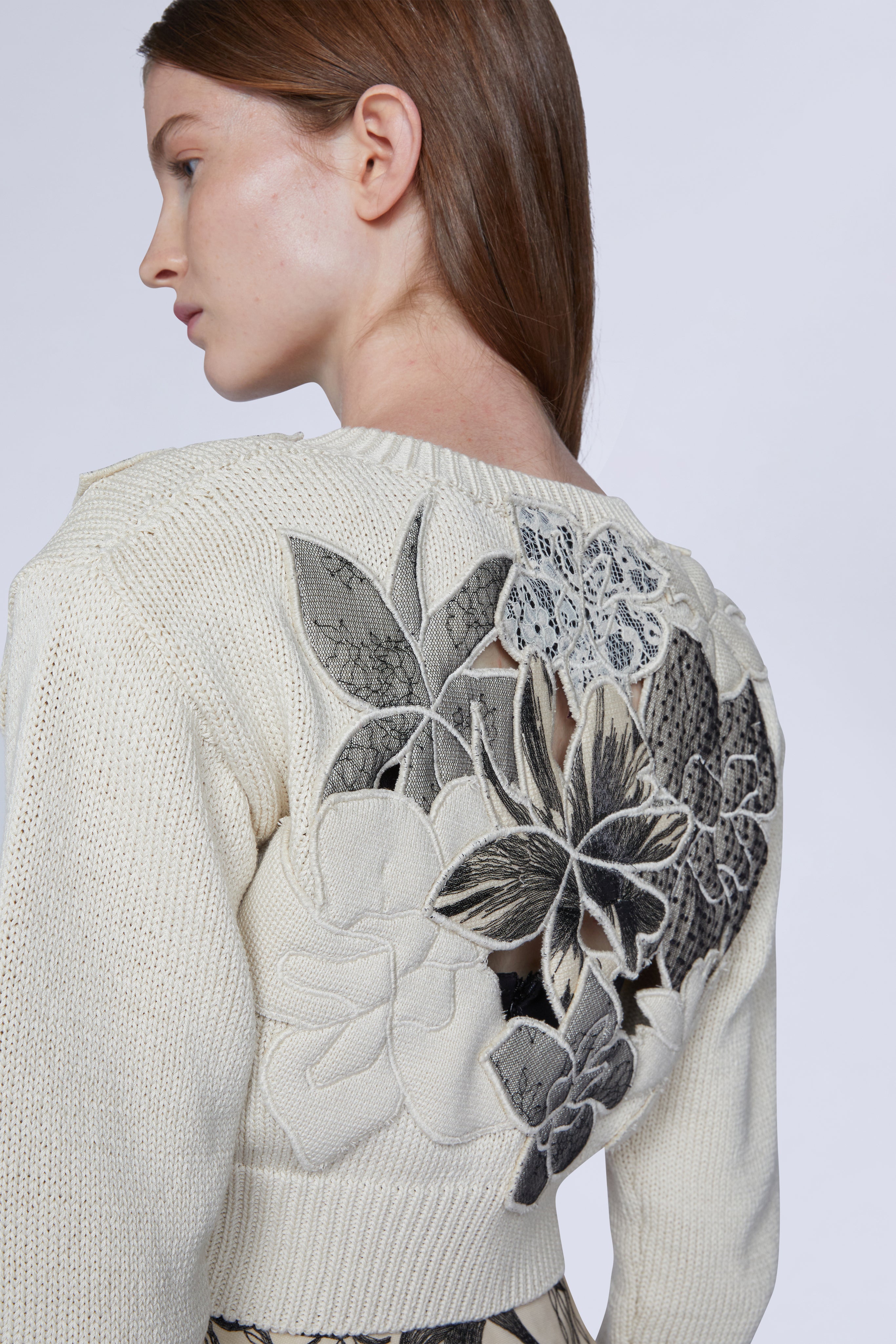 Short knitwear in 100% cotton with maxi embroideries and buttons on front.