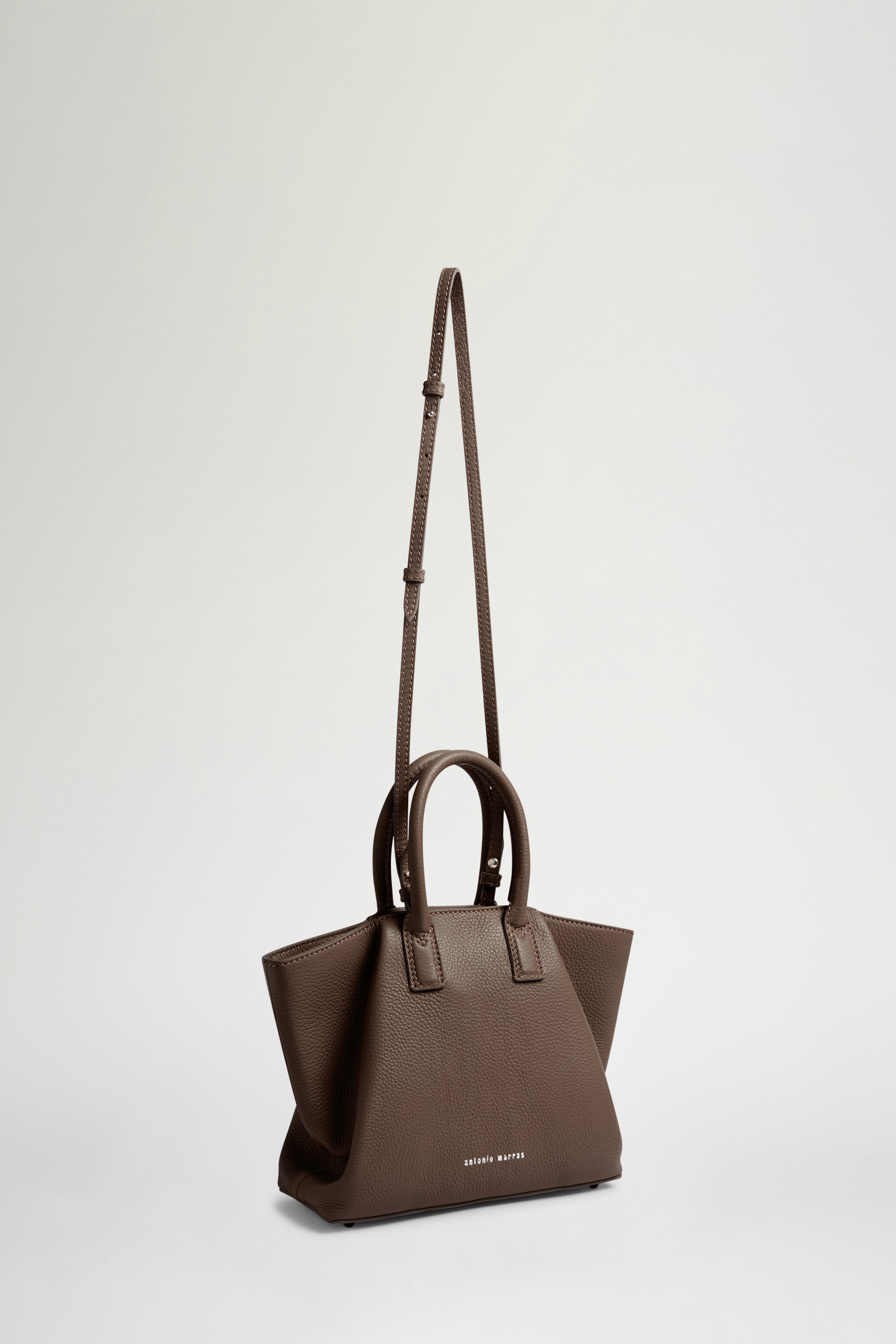 The Alma Small bag blends refined design with artisanal detail. Made from premium deer-printed calfskin in brown color, it features a soft yet textured finish, a detachable shoulder strap, and a structured trapeze silhouette. Finished with hand-waxed edges, metal logo lettering, and a contrast waterproof lining.