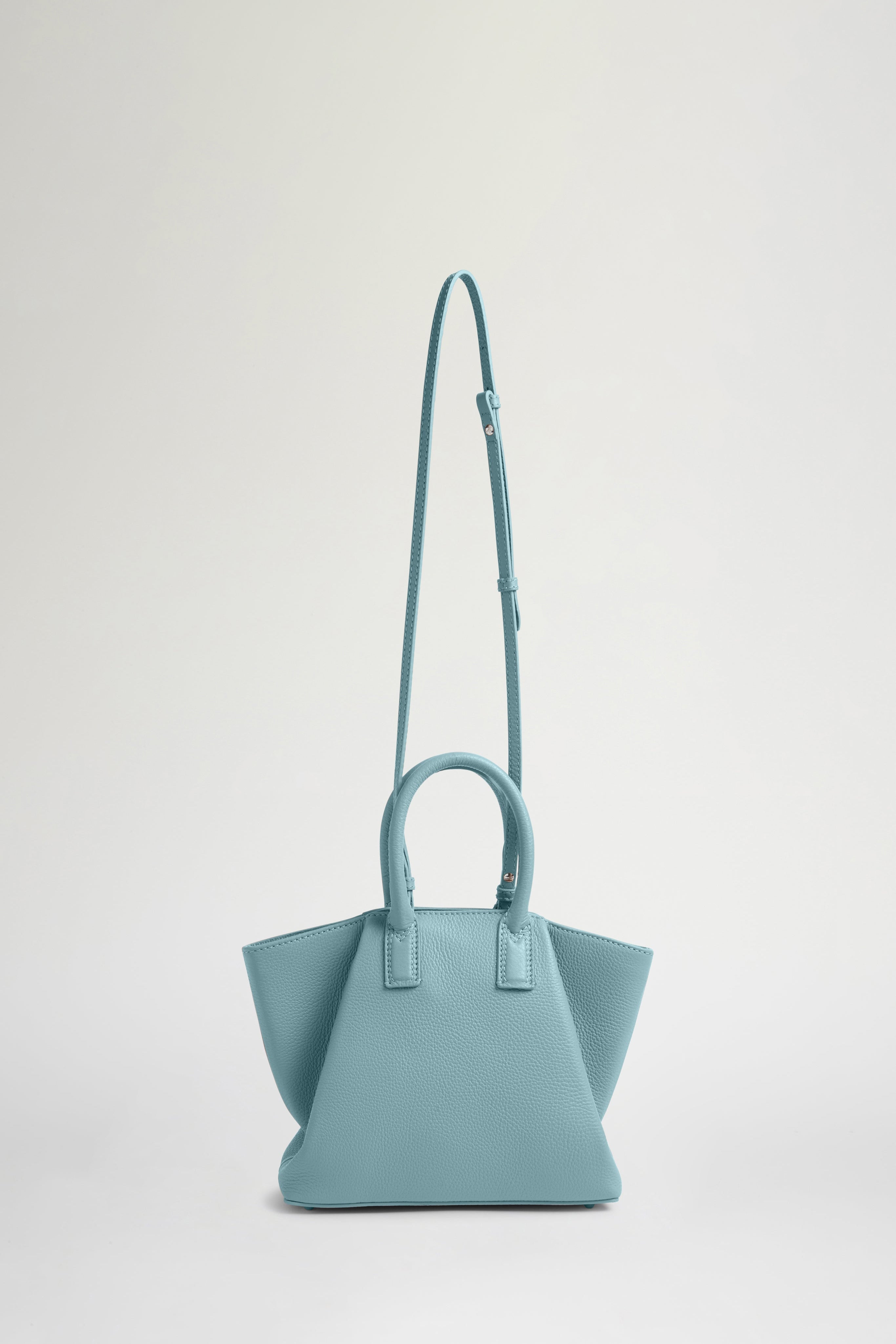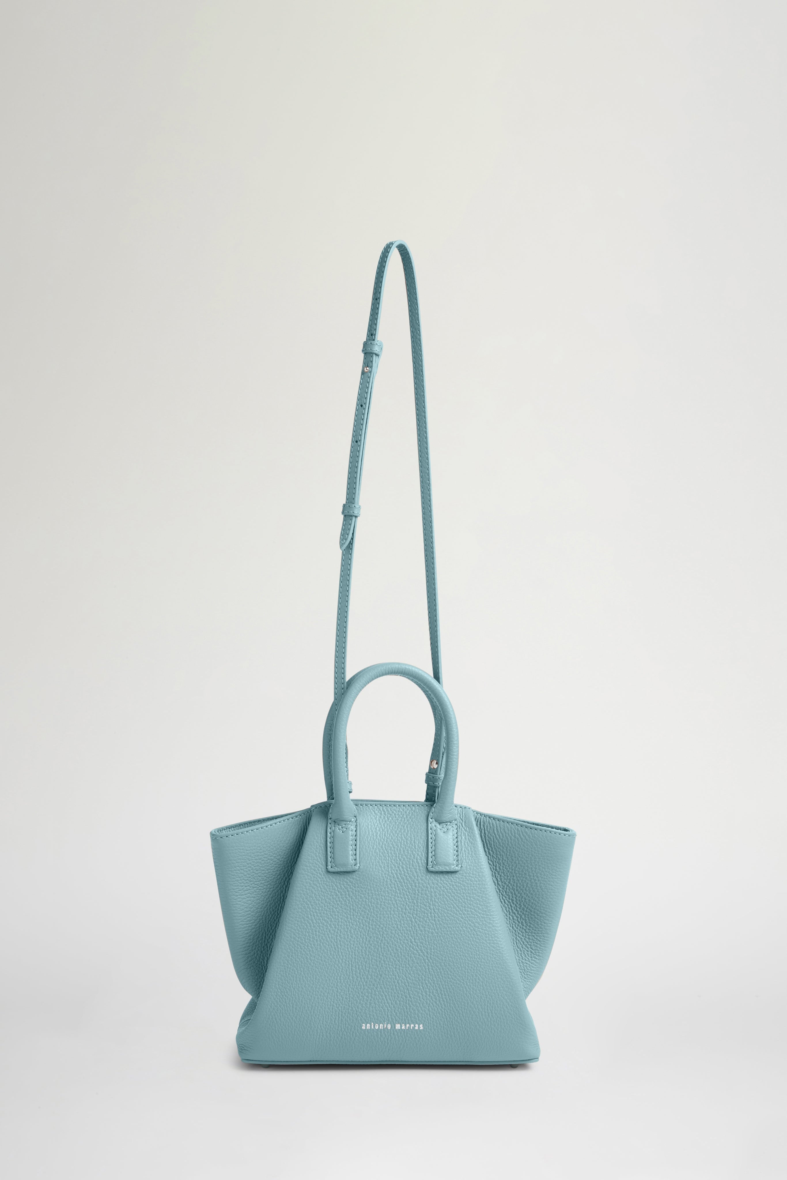 The Alma Small bag blends refined design with artisanal detail. Made from premium deer-printed calfskin in light blue color, it features a soft yet textured finish, a detachable shoulder strap, and a structured trapeze silhouette. Finished with hand-waxed edges, metal logo lettering, and a contrast waterproof lining.